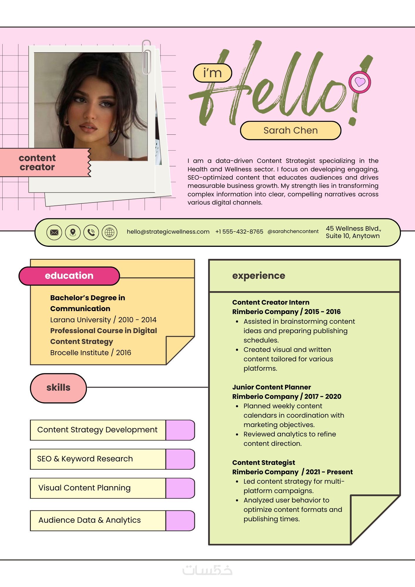 *تنسيق CV واضح، نظيف، وحديث يسهل على العين مسح المعلومات الرئيسية بسرعة.