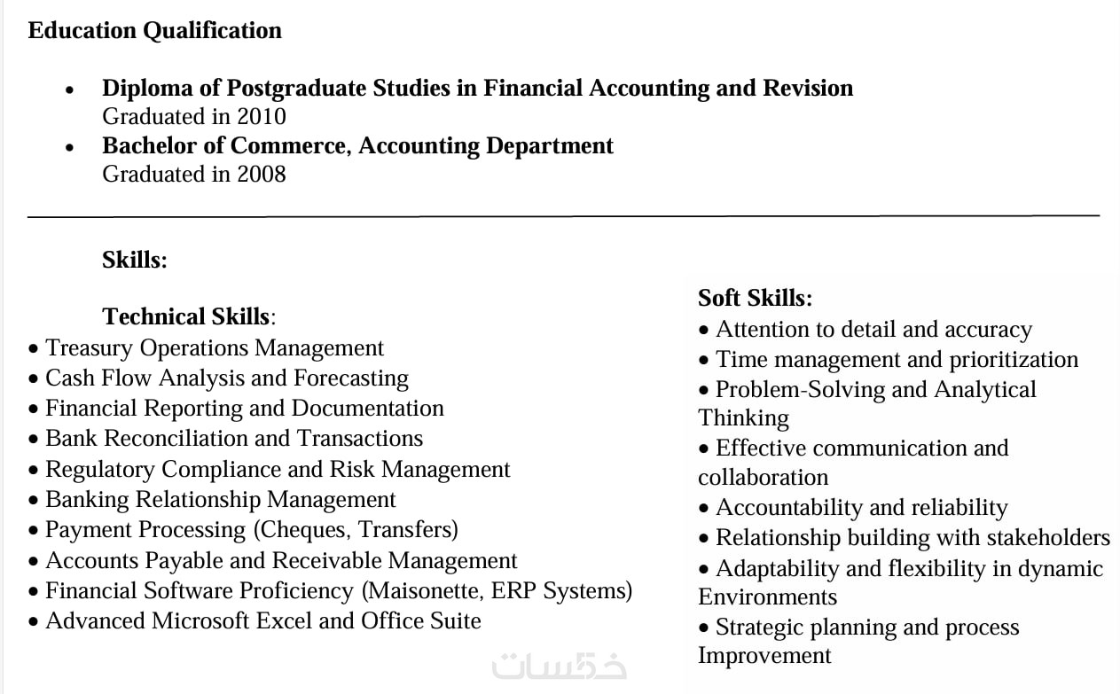 المؤهلات الدراسية (اسم الجامعة – التخصص – سنة التخرج).
