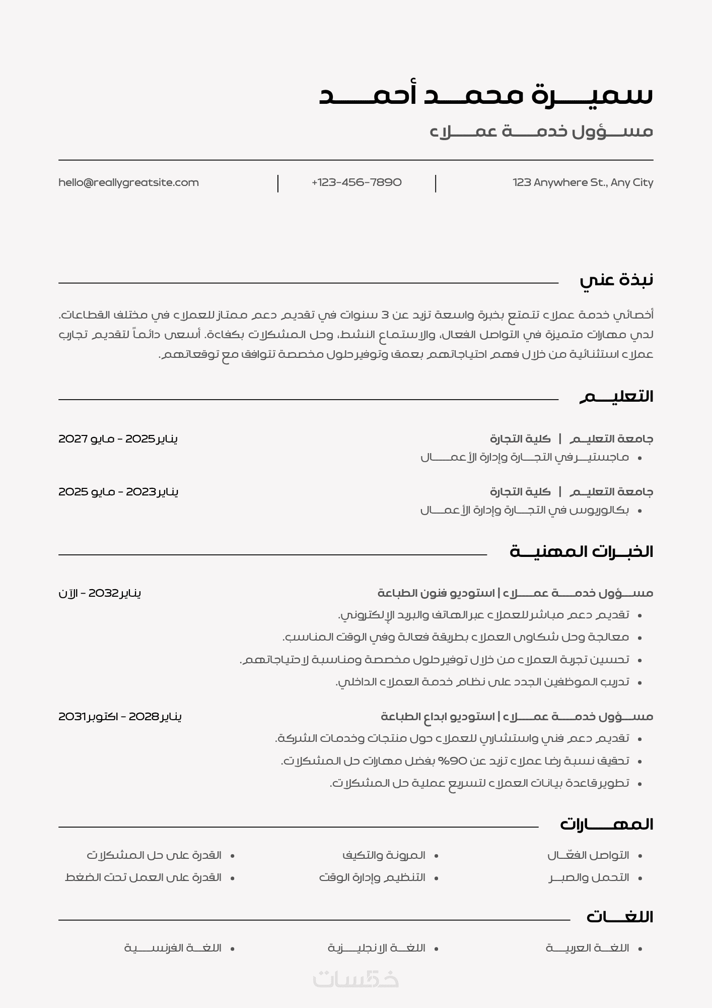 متوافق مع ATS: يزيد فرص ظهورك لدى أصحاب العمل وتجاوز الفلترة الإلكترونية.