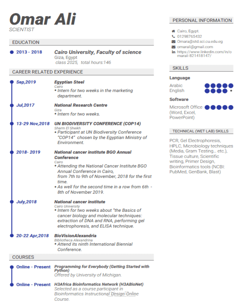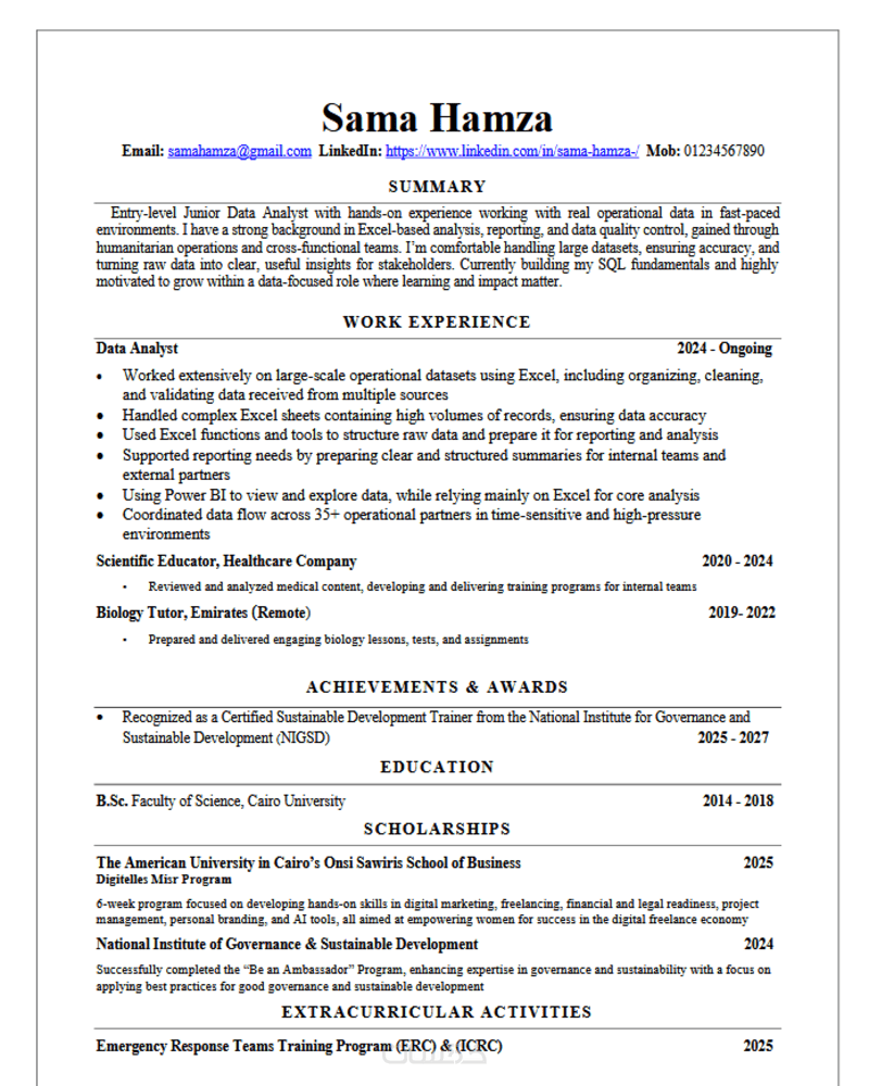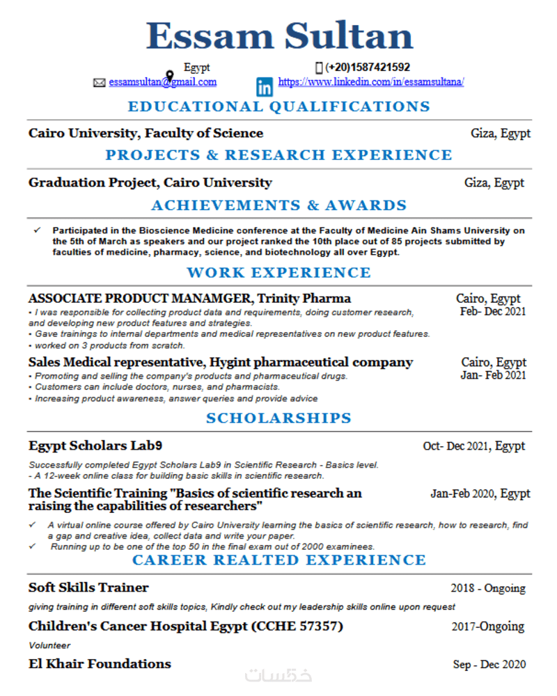 بساعد حديثي التخرج في إعداد سيرة ذاتية إنجليزية بسيطة وواضحة تساعدك تبدأ طريقك المهني.