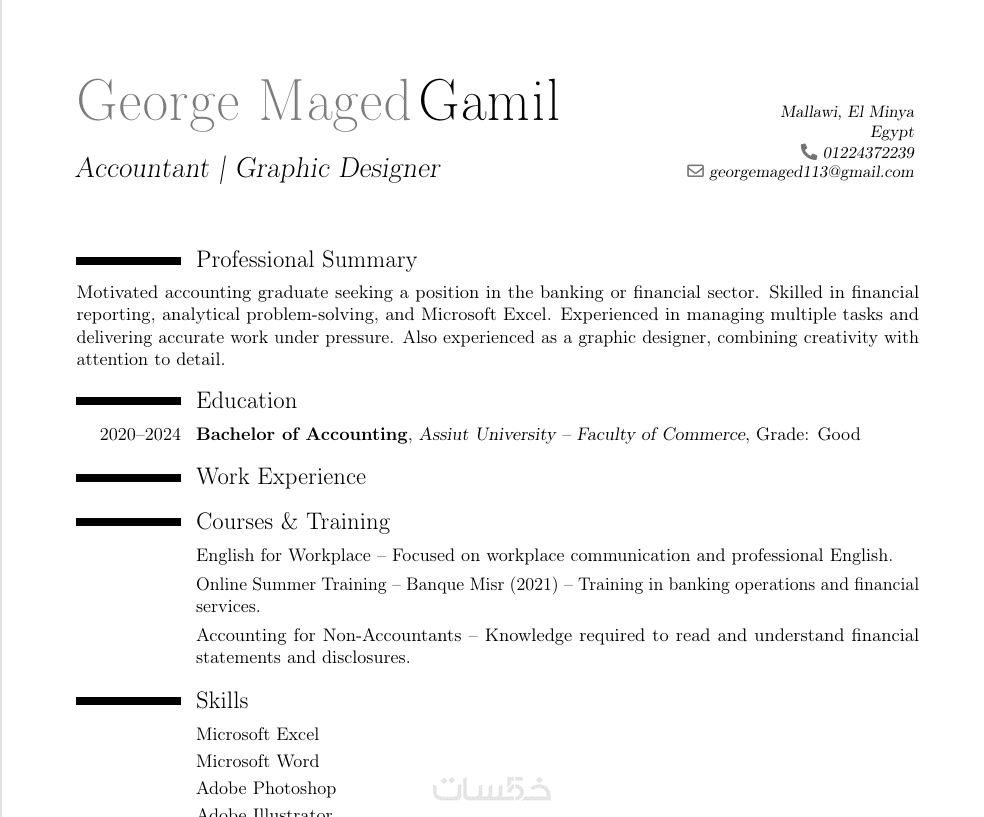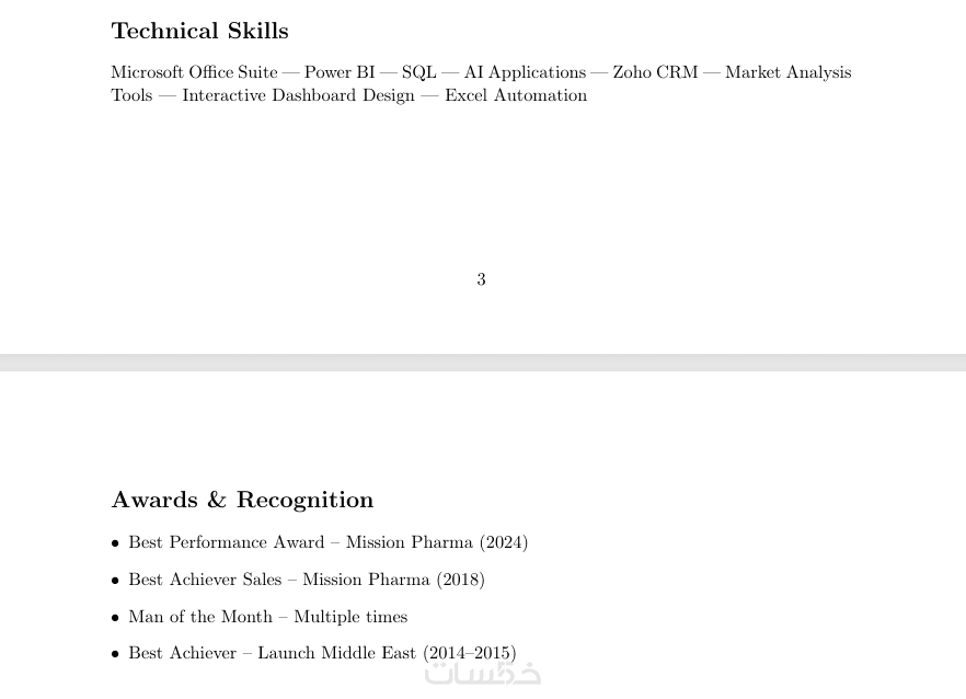 تنسيق مرتب واحترافي يعكس خبراتك ومهاراتك بشكل جذاب وواضح.