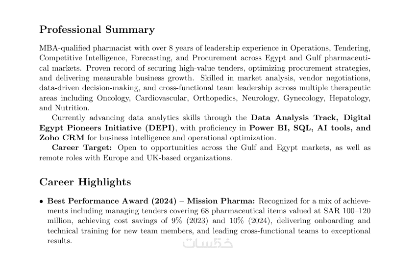 تحسين للصياغة والمحتوى بما يتناسب مع تخصصك والمسمى الوظيفي المستهدف.