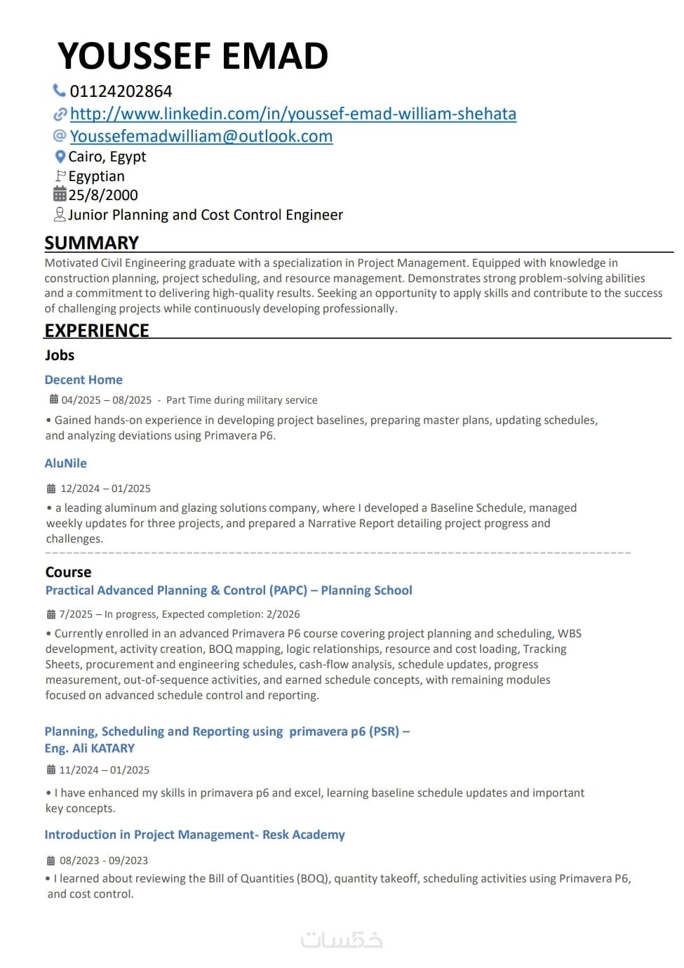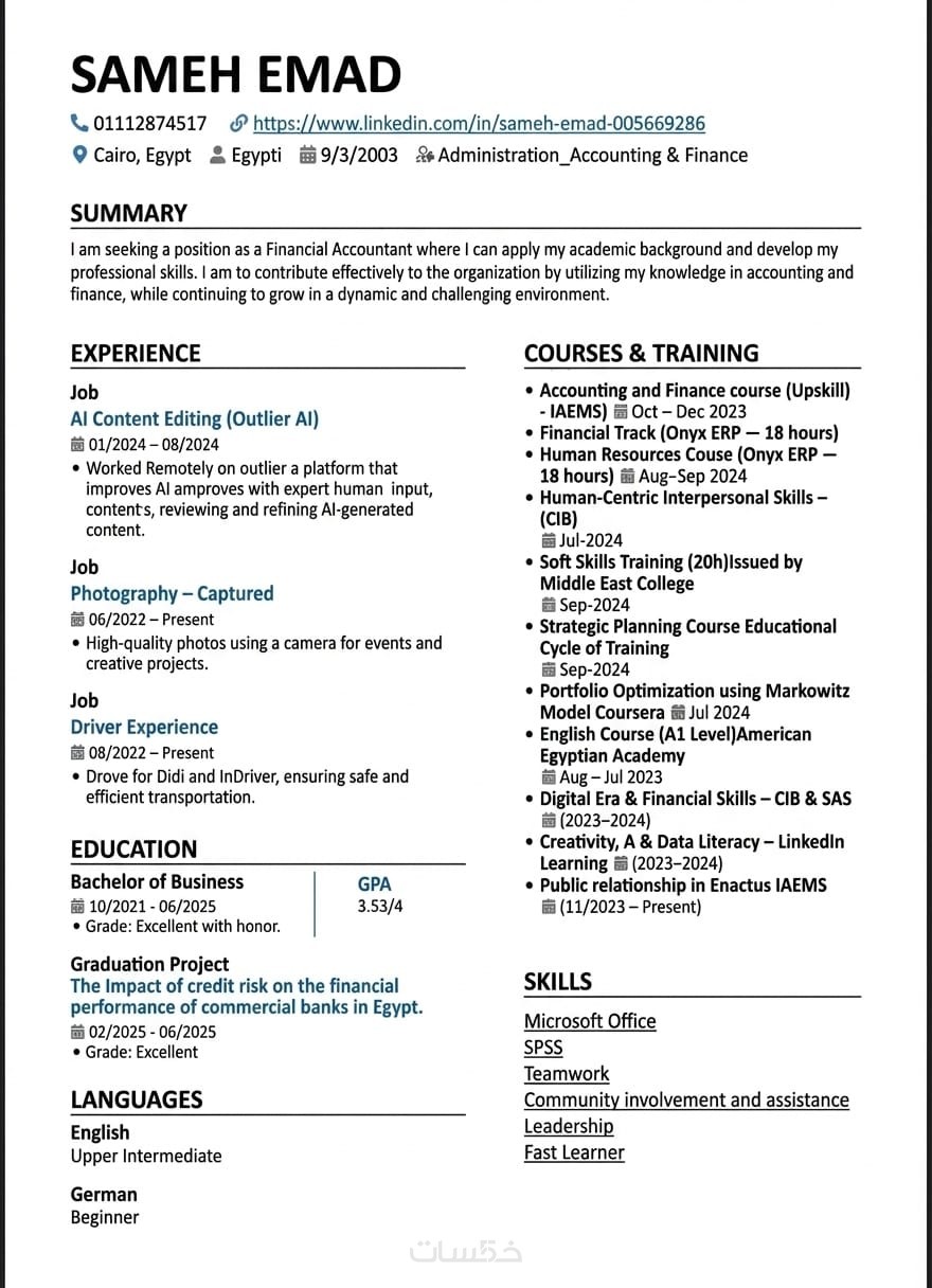 يتم مراجعة السيرة الذاتية بعناية لضمان وضوح الكلمات المفتاحية وسهولة قراءة النظام لها.