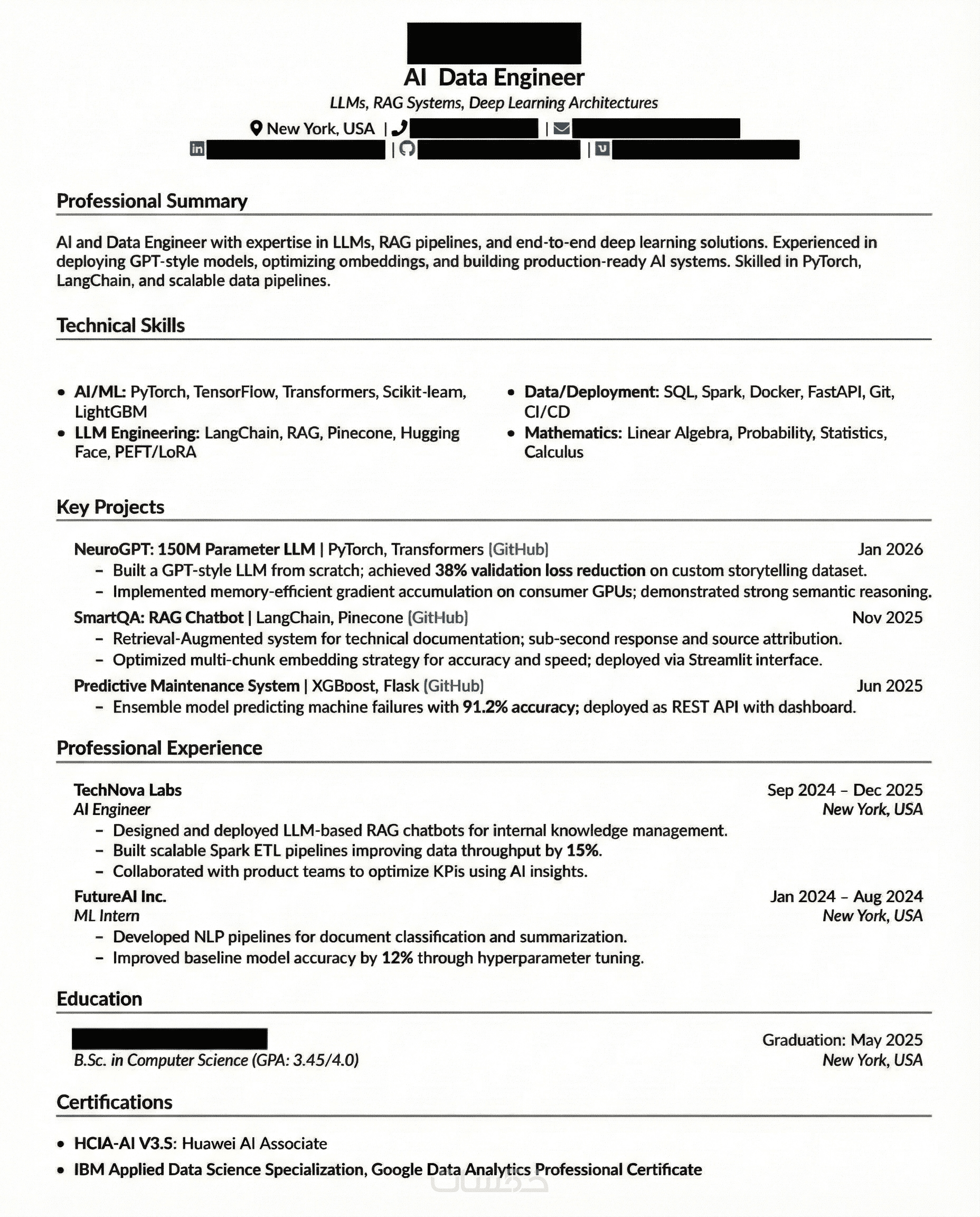 ستكون السيرة الذاتية واضحة وسهلة القراءة، مع تصميم منظم وصياغة مختصرة تساعد صاحب العمل على فهم خبراتك بسرعة. المحتوى مخصص حسب المجال الوظيفي المستهدف لإبراز المهارات والخبرات الأكثر أهمية وزيادة فرص القبول في السوق. الخدمة تعتمد على تحليل مبني على متطلبات الوظائف الحقيقية لتحديد الفجوات وتحسين فرصك، كما تساعدك على الاستعداد بشكل أفضل لمقابلات التوظيف من خلال الأسئلة المتوقعة التي تُقدّم حسب الوظيفة المستهدفة.
