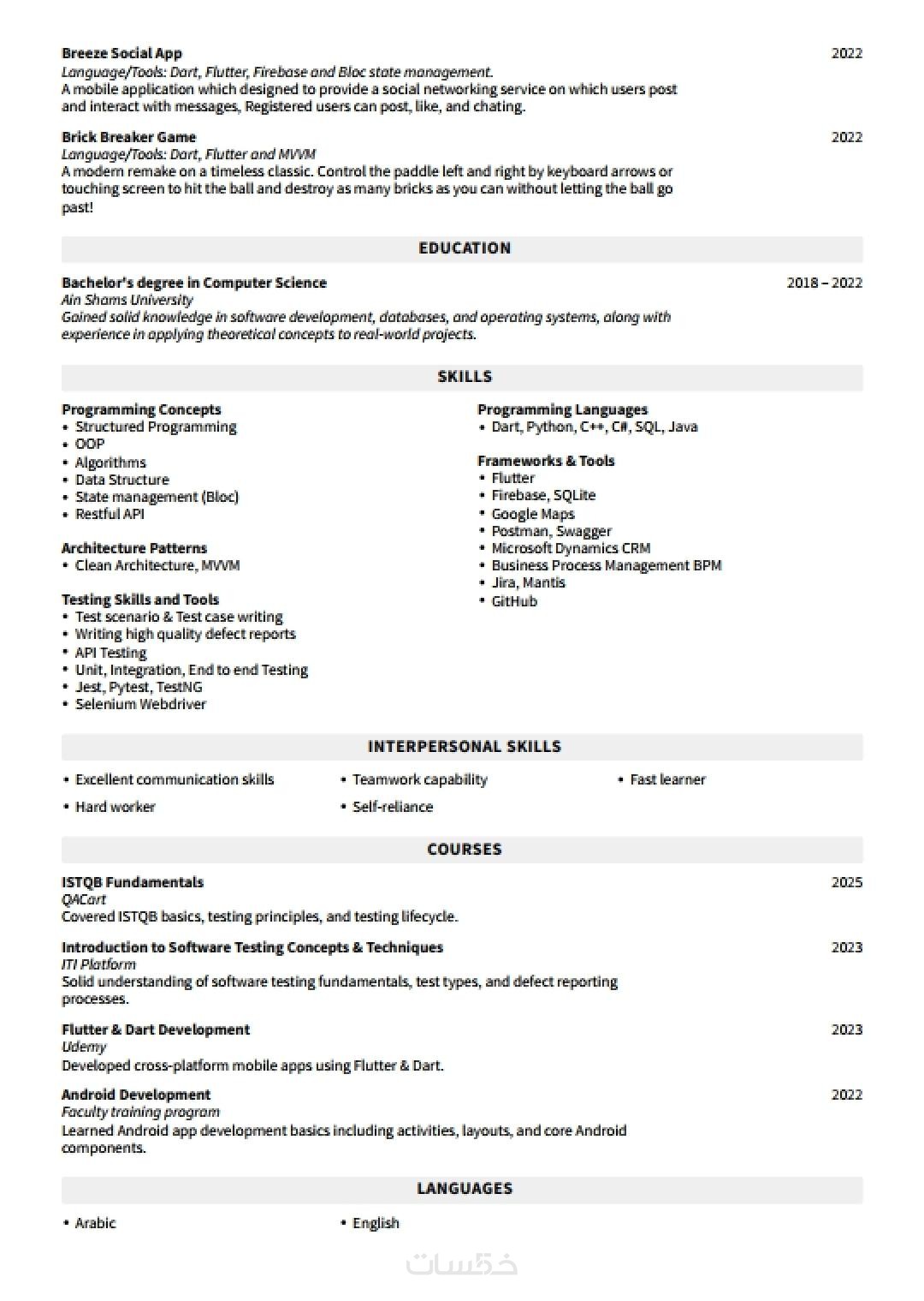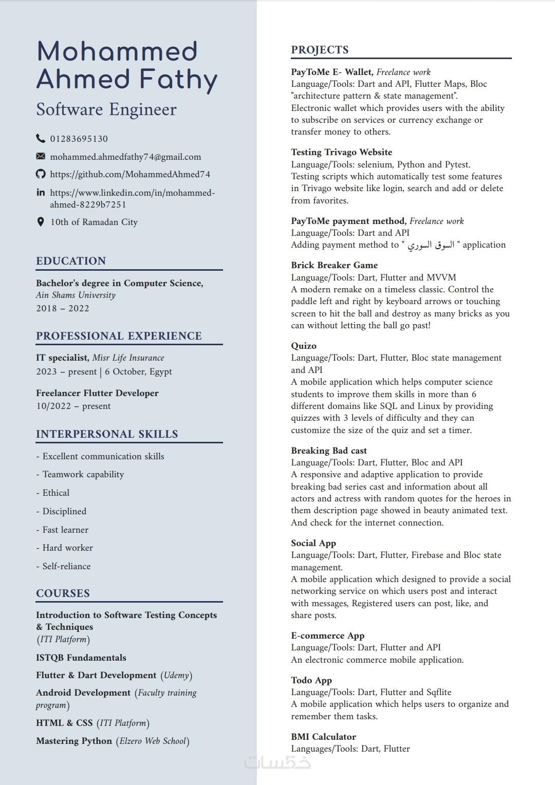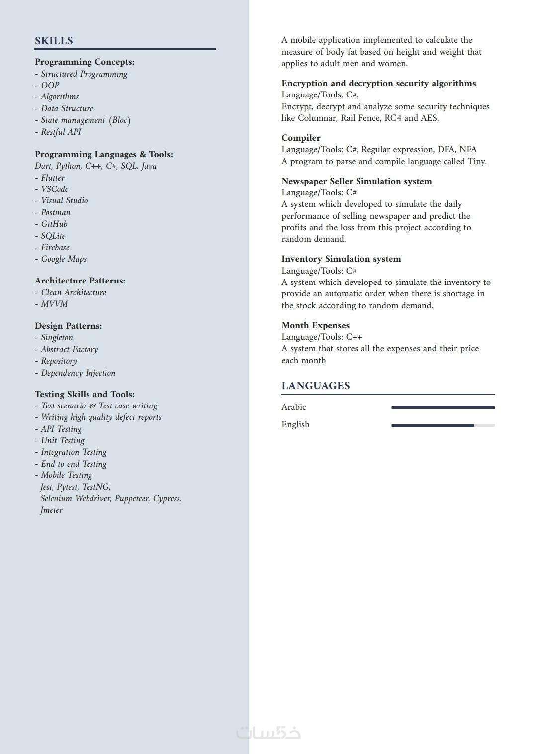 تصميم سيرة ذاتية باللغة العربية والانجليزية