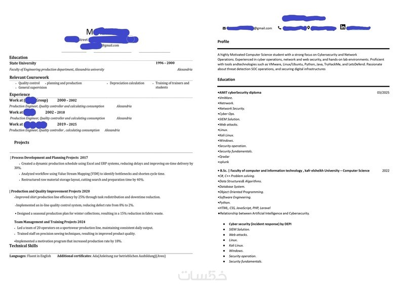 بصفتي خبيرة في إعداد السير الذاتية، سأقوم بتصميم وكتابة سيرتك الذاتية بأسلوب يجمع بين الأناقة البصرية والمعايير التقنية التي تضمن تجاوز أنظمة الفرز (ATS).