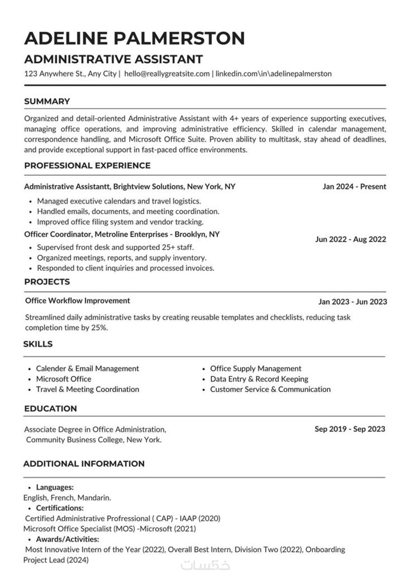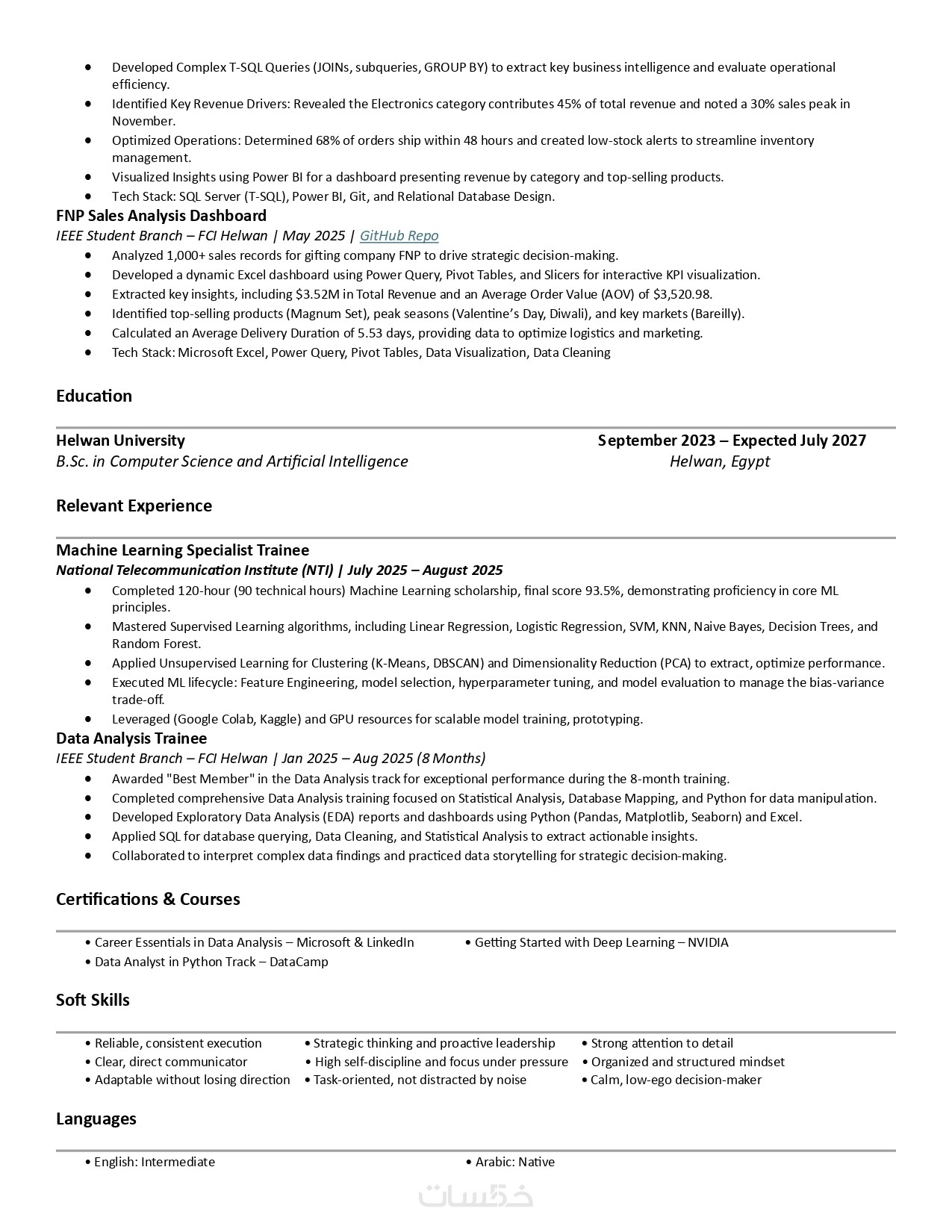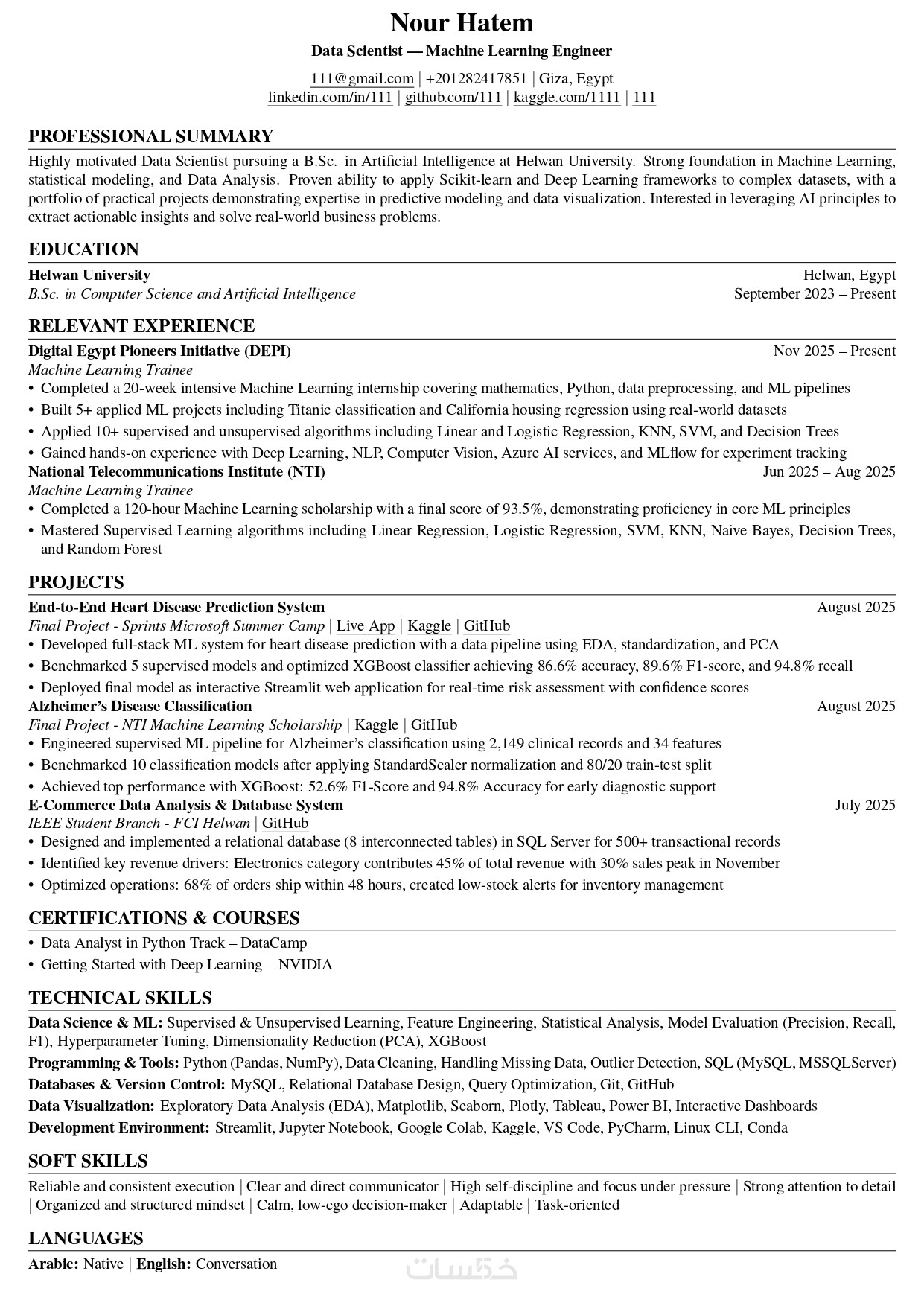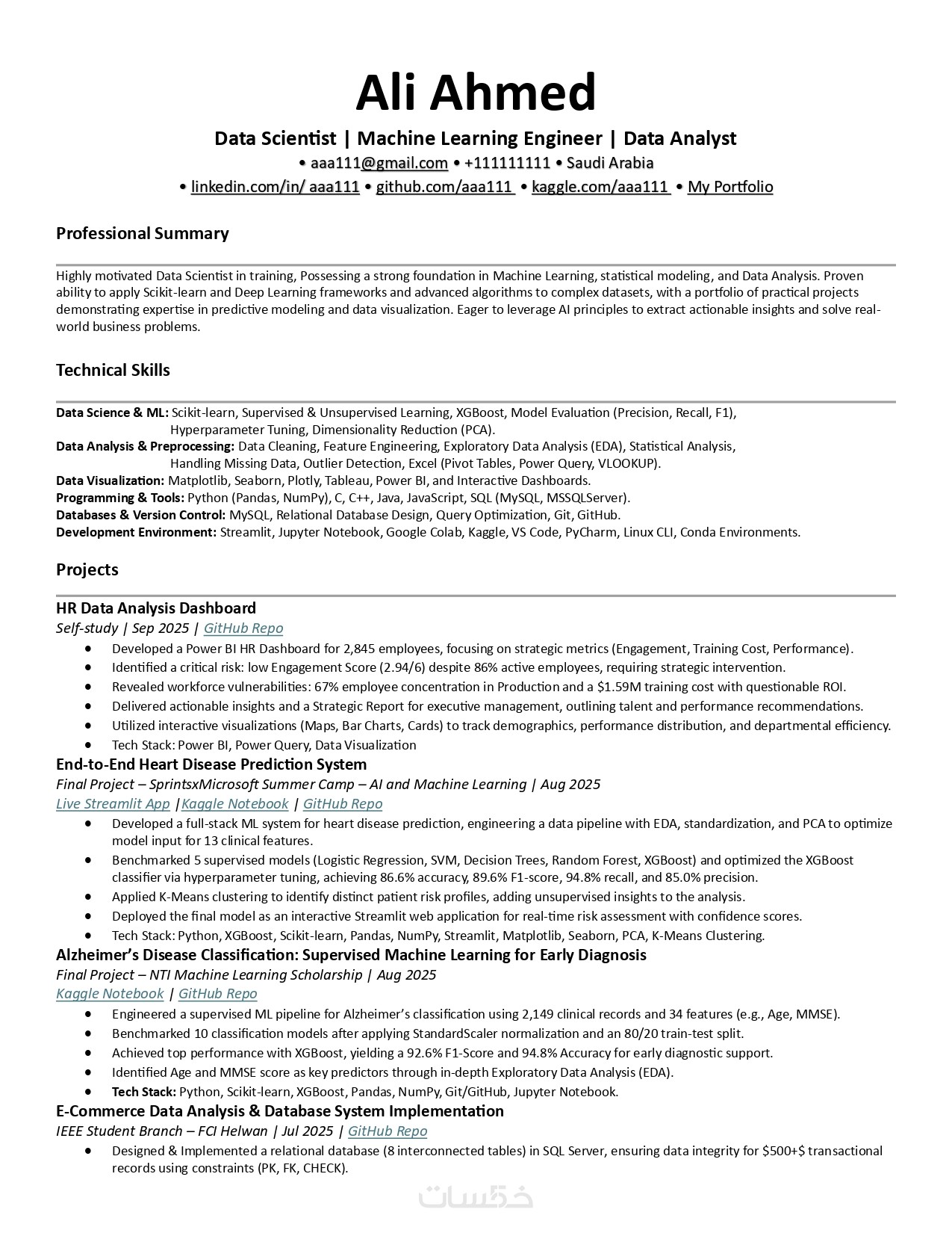 تصميم نظيف بدون تعقيد حتى يمر بسهولة عبر أنظمة ATS.