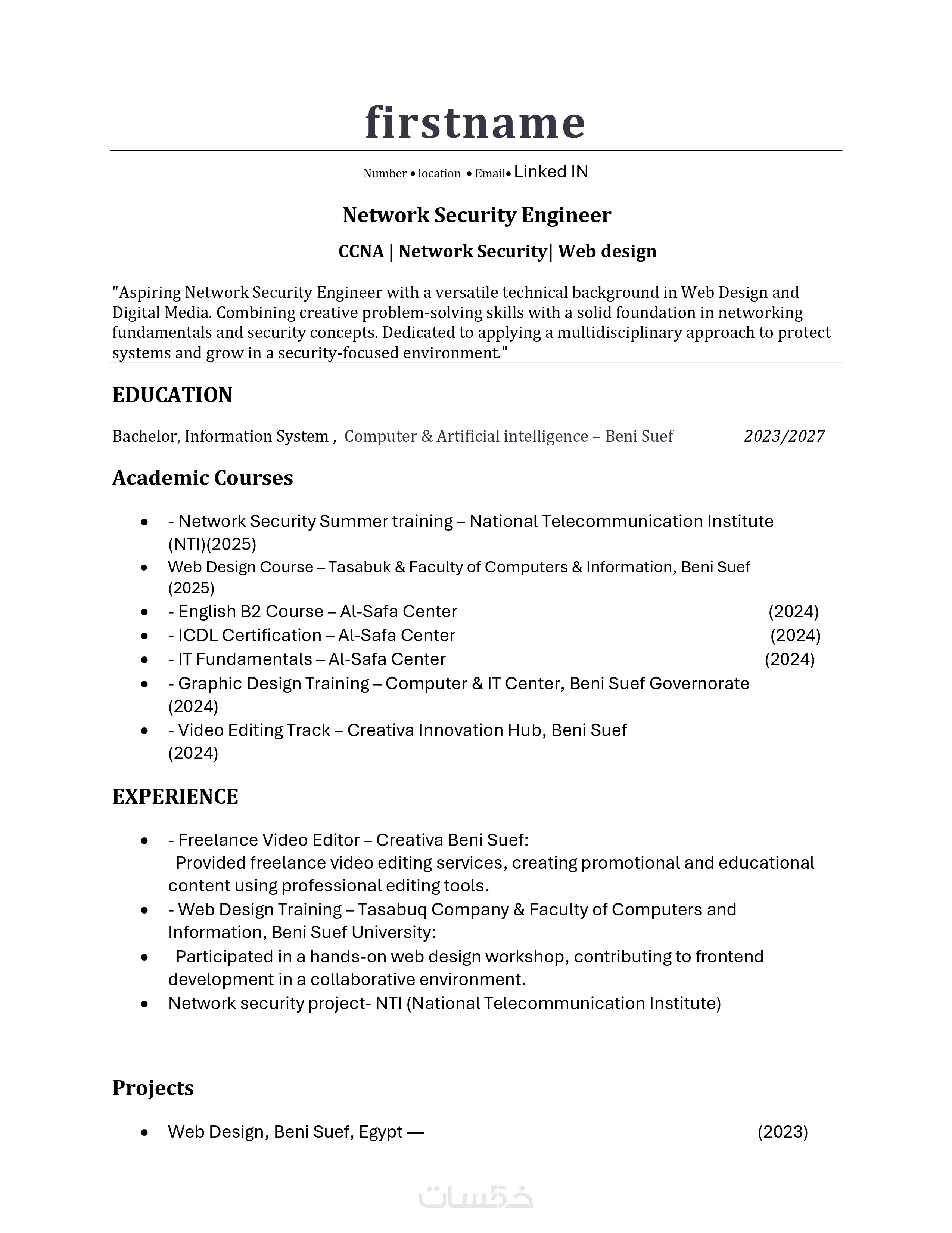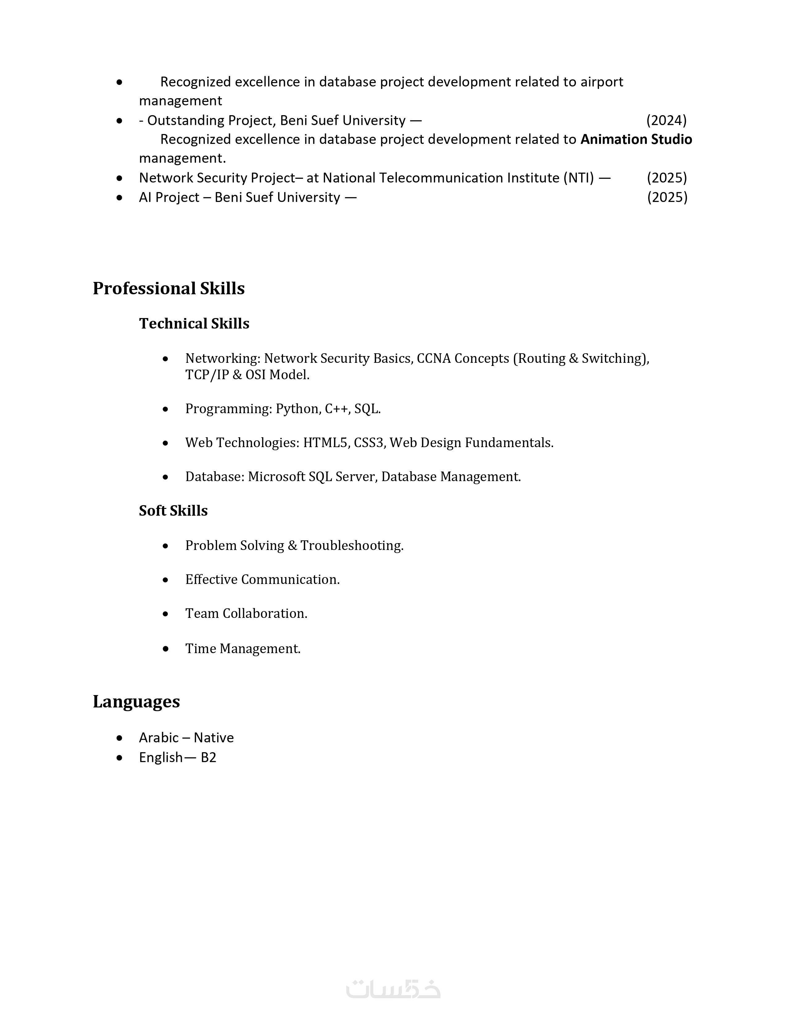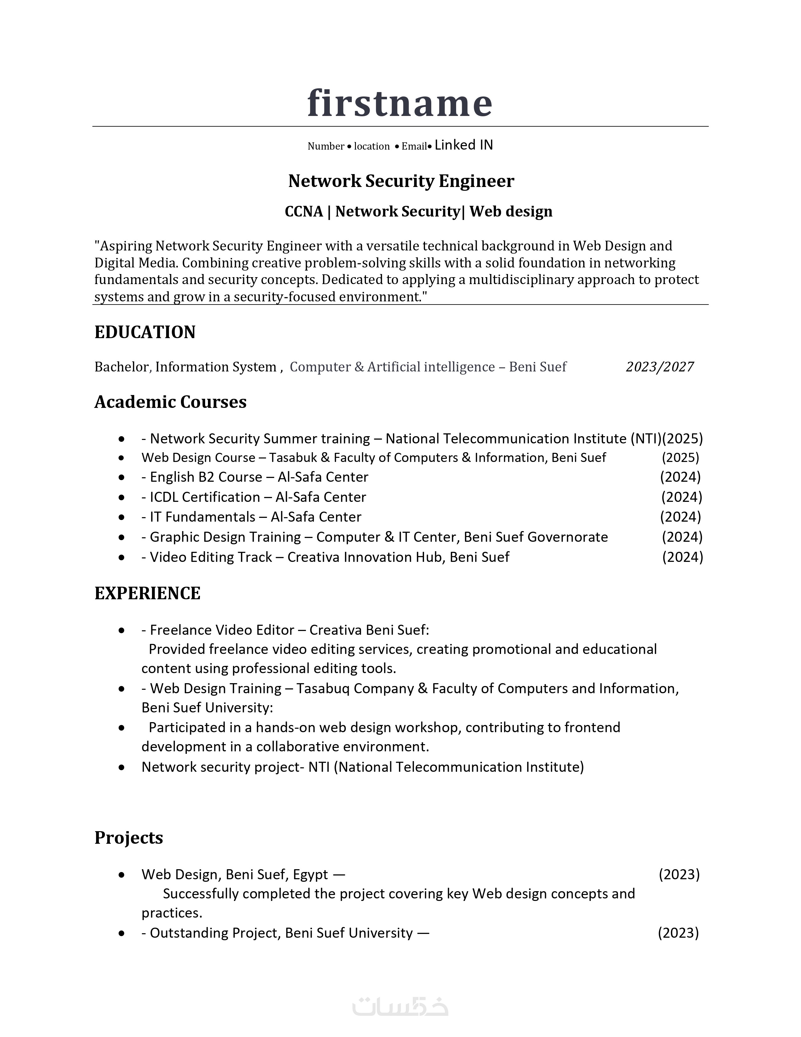 بصفتي متخصصاً في [مجالك، مثل: علوم الحاسب]، أقدم لك خدمة صياغة وتصميم الـ CV بأسلوب عصري واحترافي.