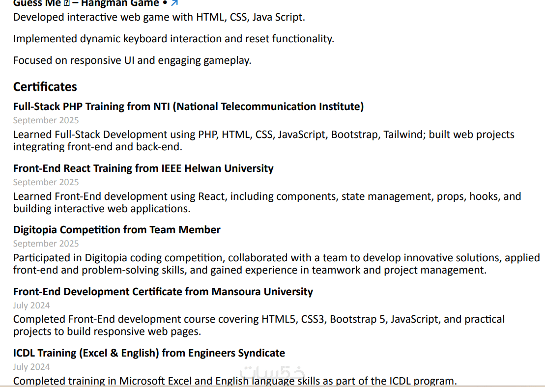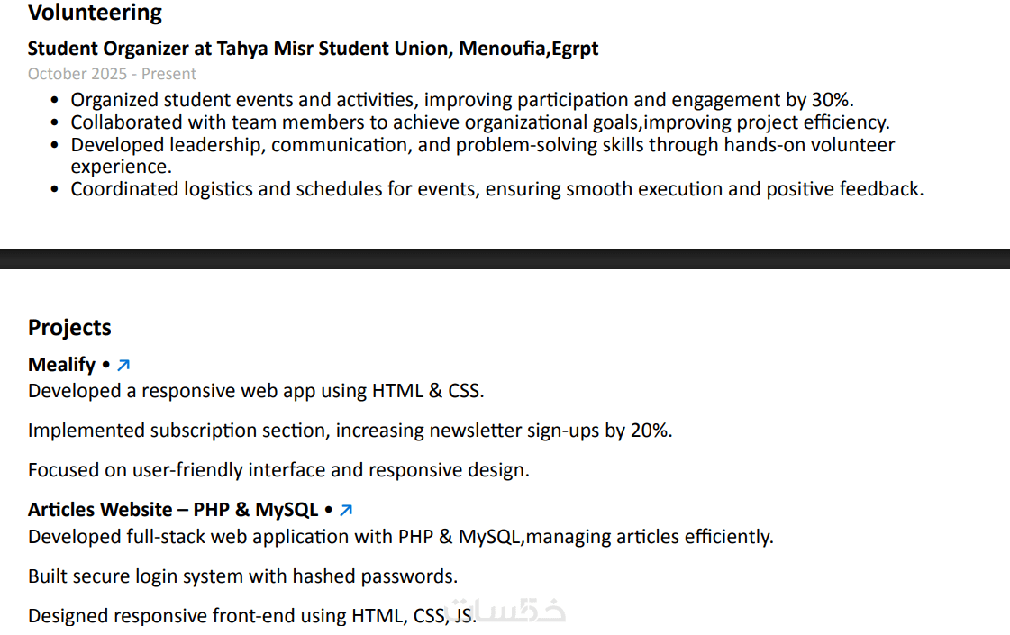 سأقوم بتصميم سيرة ذاتية (CV) احترافية ومنظمة تساعدك على التقديم للوظائف بشكل أفضل وجذب انتباه أصحاب العمل.
