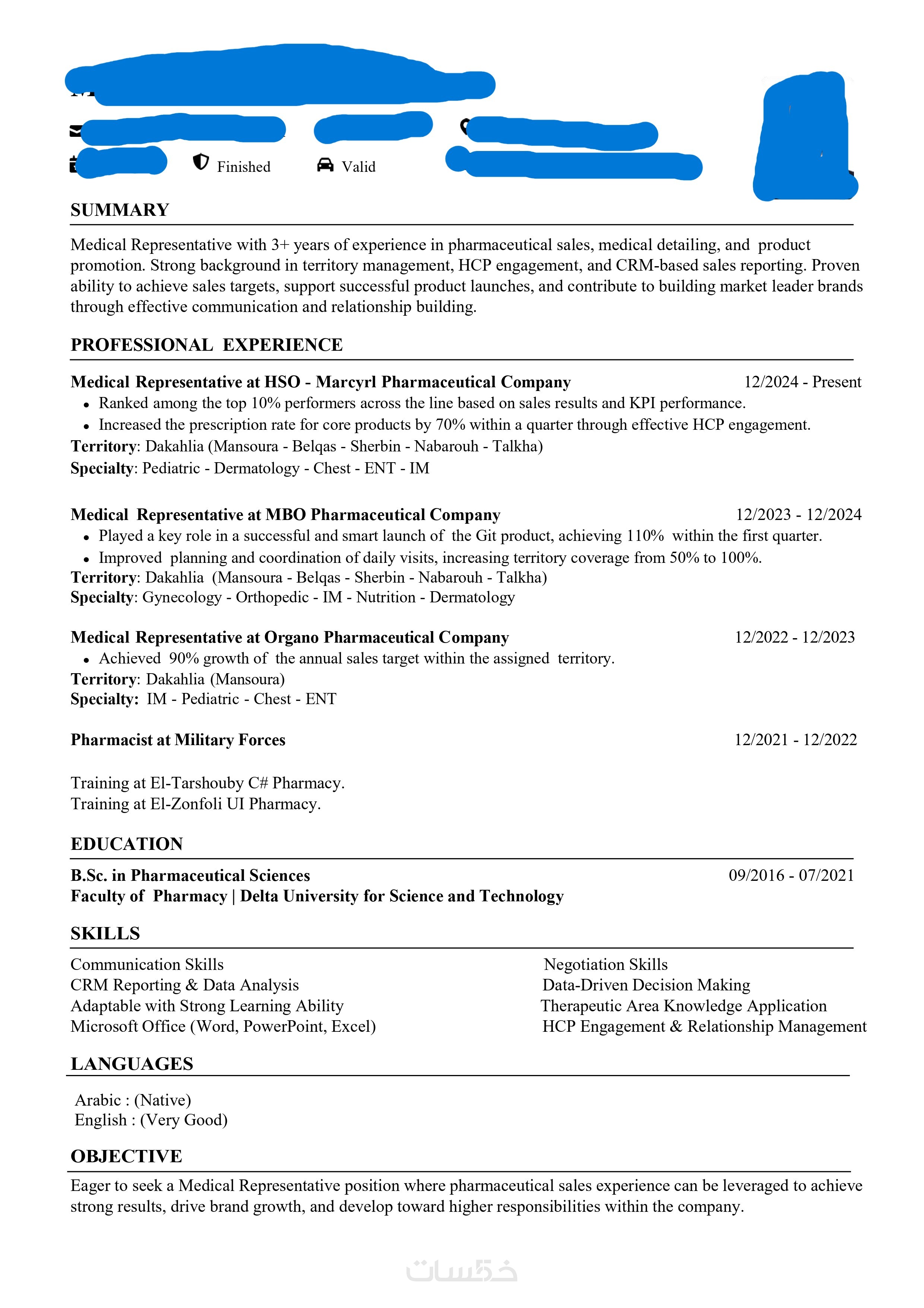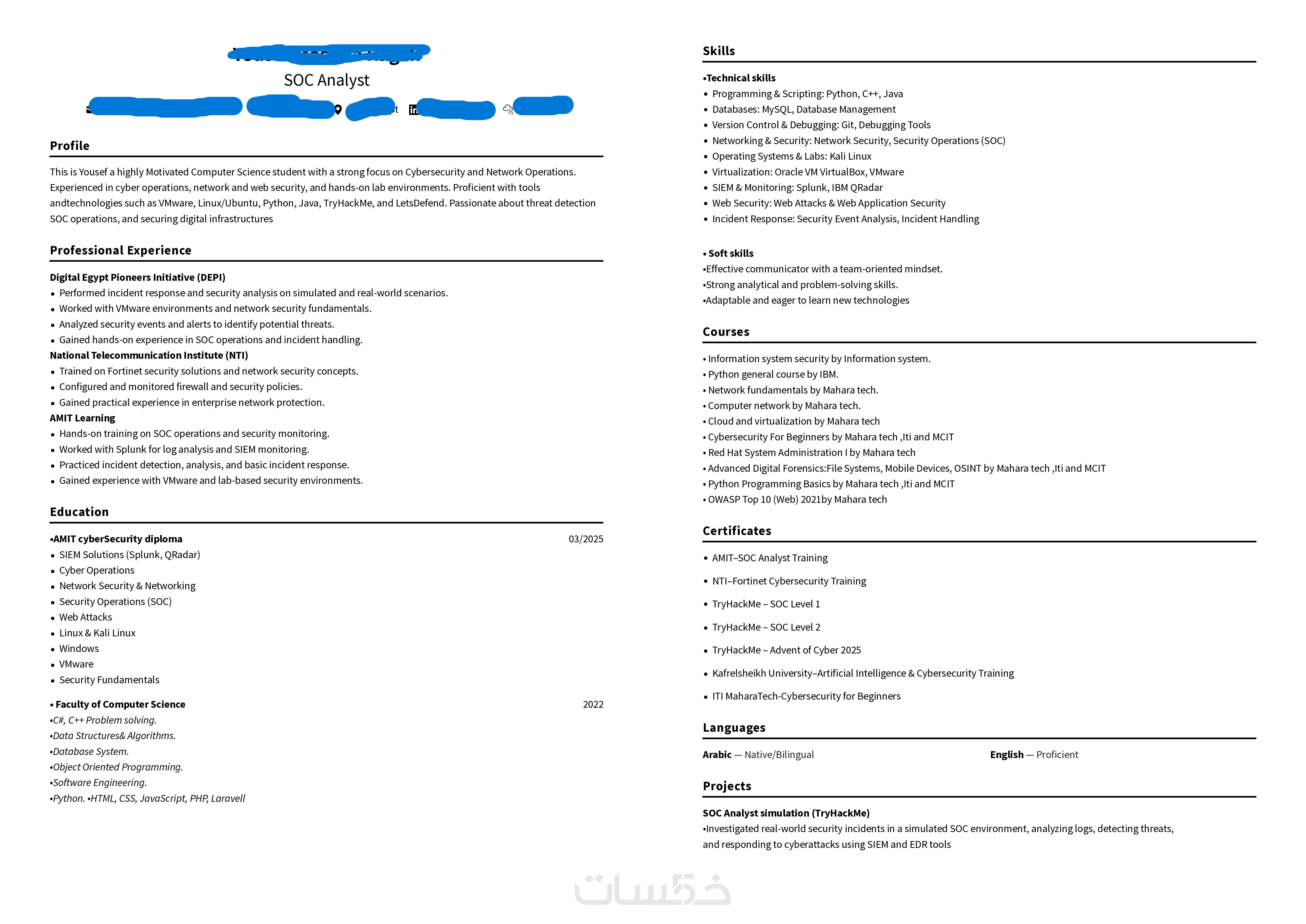 أقدم السيرة الذاتية باللغة التي تحتاجها، سواء العربية أو الإنجليزية، مع الحفاظ على الاحترافية في الصياغة.