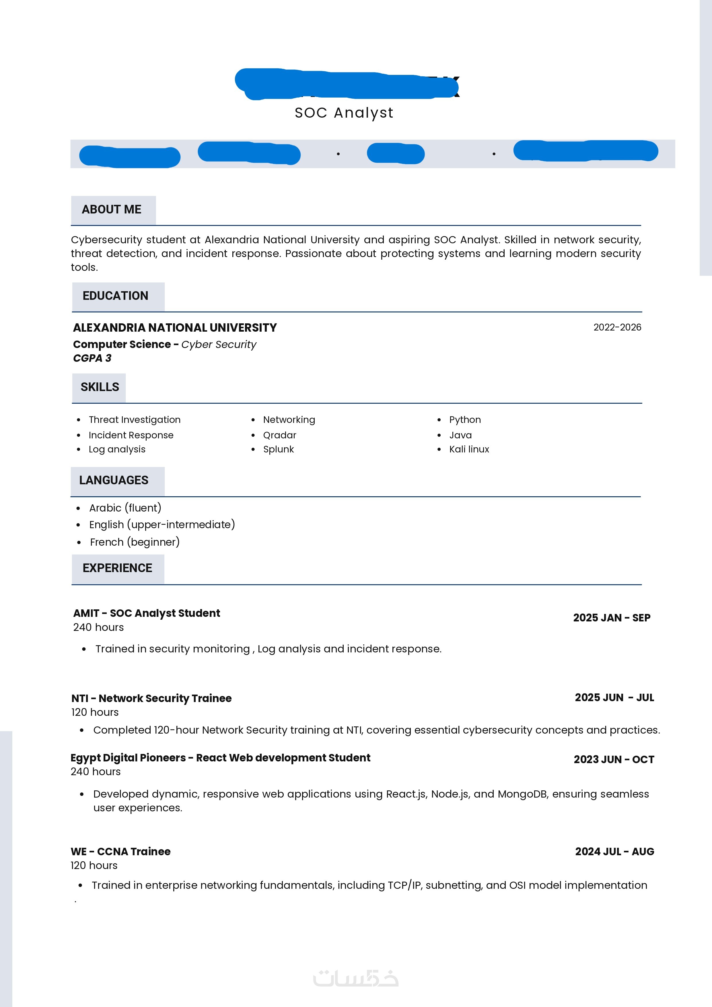 أعتمد على تصميم نظيف وواضح يسهل تصفحه خلال ثوانٍ، لأن مسؤولي التوظيف لا يملكون وقتًا لقراءة CV معقد أو مزدحم