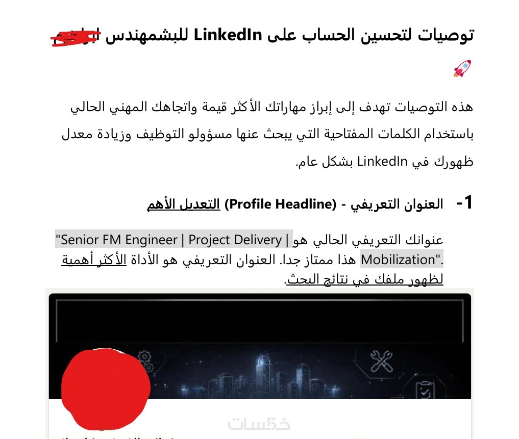 بالإضافة إلى تحسين شامل لبروفايلك على LinkedIn لزيادة ظهورك وجذب أصحاب العمل.