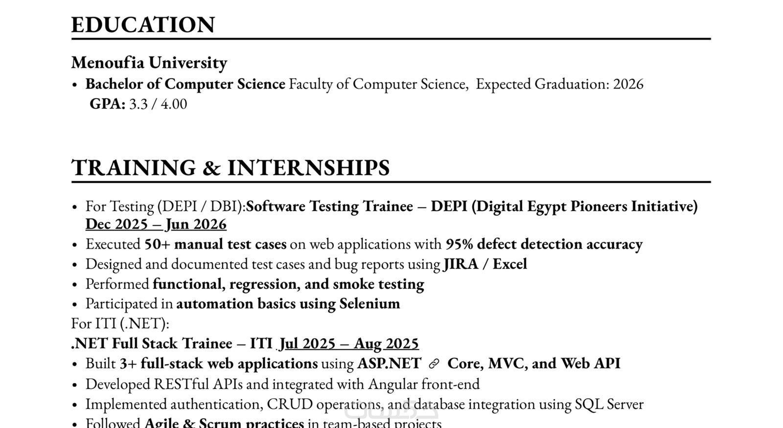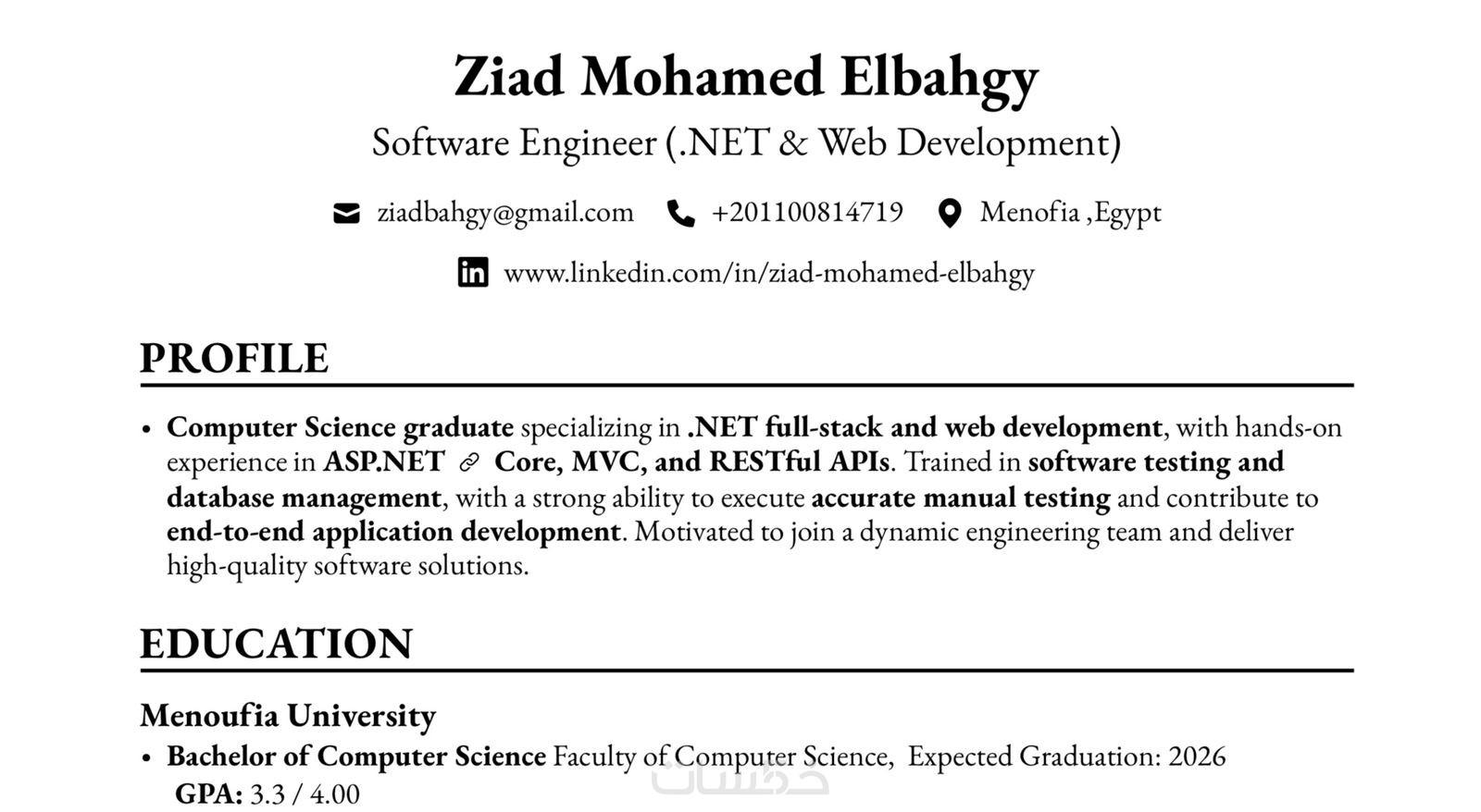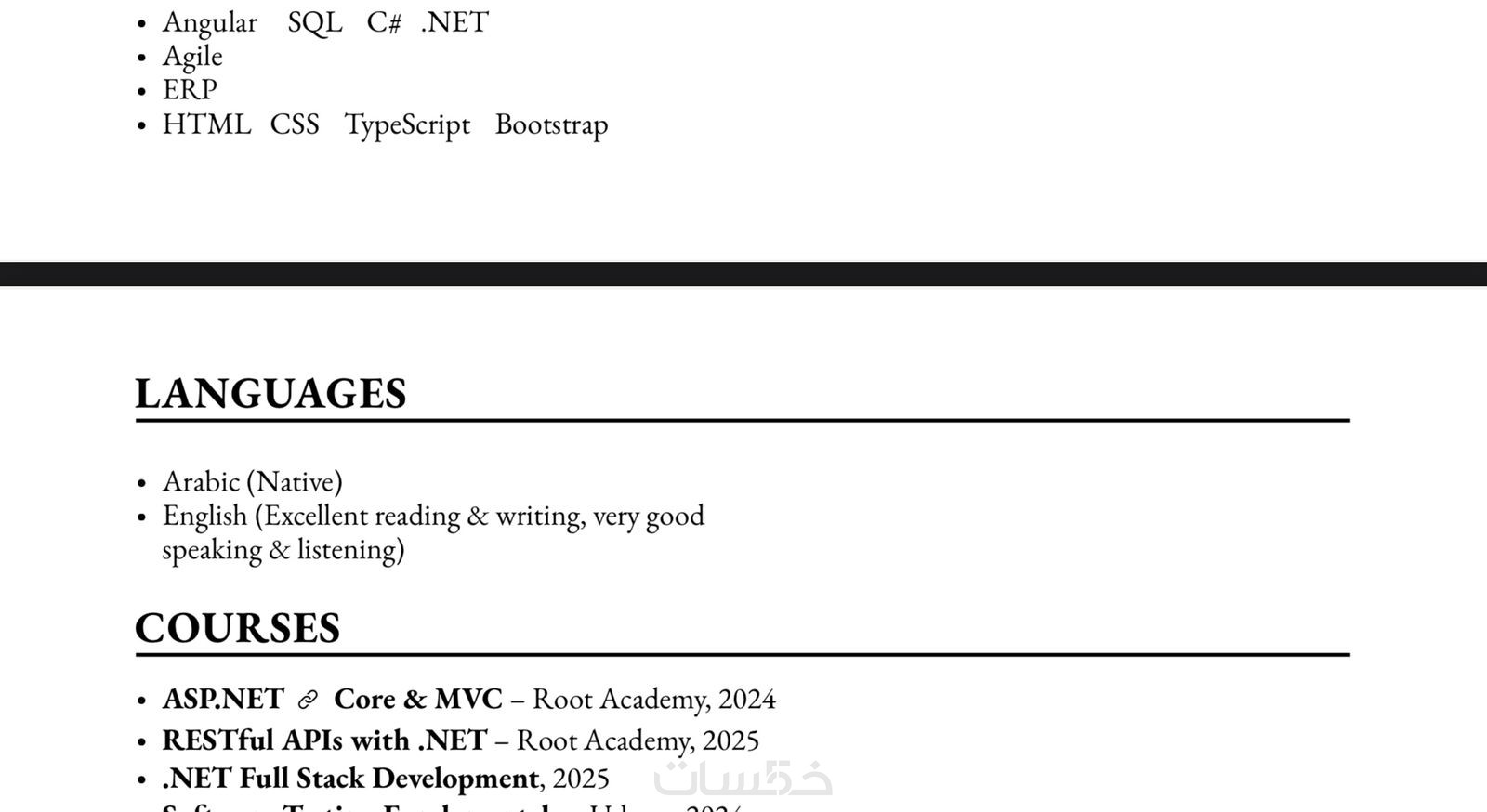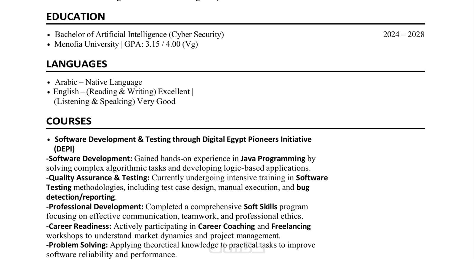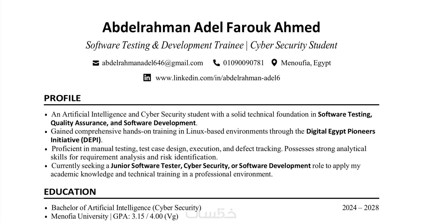 خدمة تصميم وتحسين السيرة الذاتية الاحترافية تركز على إعداد CV منظم وجذاب يعكس خبراتك ومهاراتك بطريقة واضحة واحترافية، مع استخدام تنسيق حديث وكلمات مفتاحية مرتبطة بالمجال الوظيفي الذي تستهدفه. يتم تحليل السيرة الذاتية الحالية وتعديلها لتبرز الإنجازات والمهارات الأساسية بشكل يلفت انتباه مسؤولي التوظيف، مما يزيد من فرص الحصول على مقابلات عمل. كما يتم ترتيب الأقسام مثل الخبرات العملية