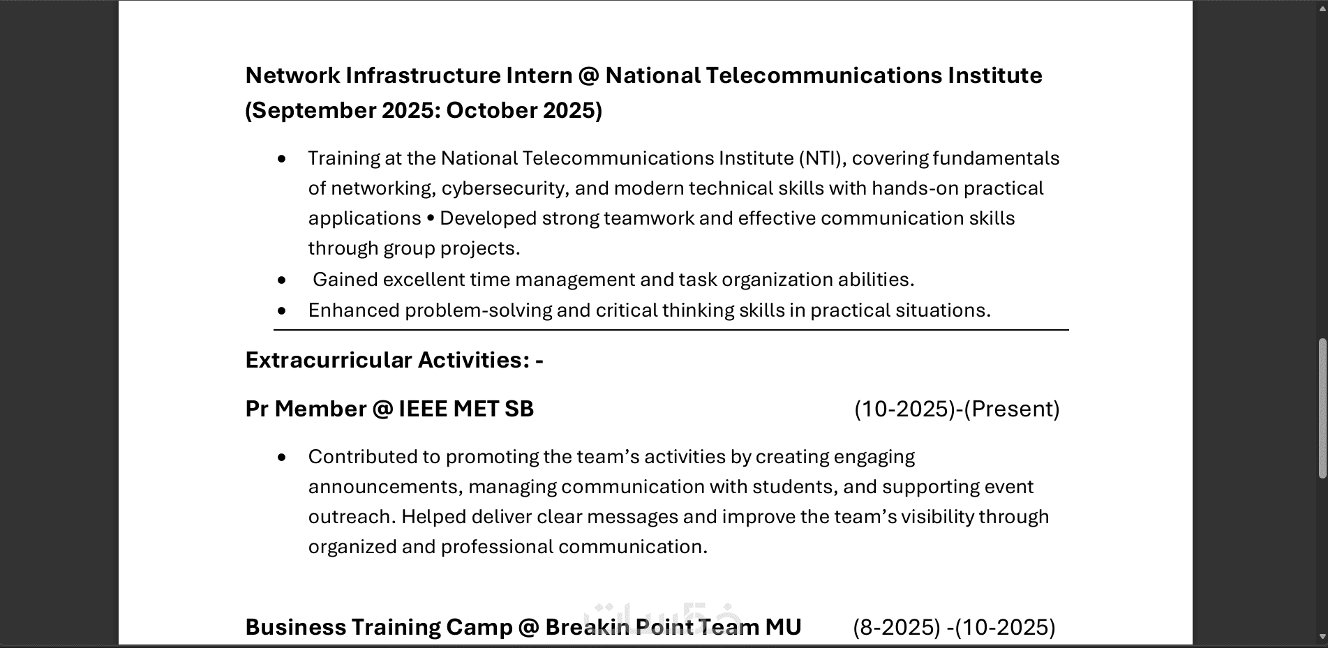 صيغة الملف: تسليم الملف بصيغة PDF جاهزة للطباعة وللقراءة من قِبل أنظمة الـ ATS.