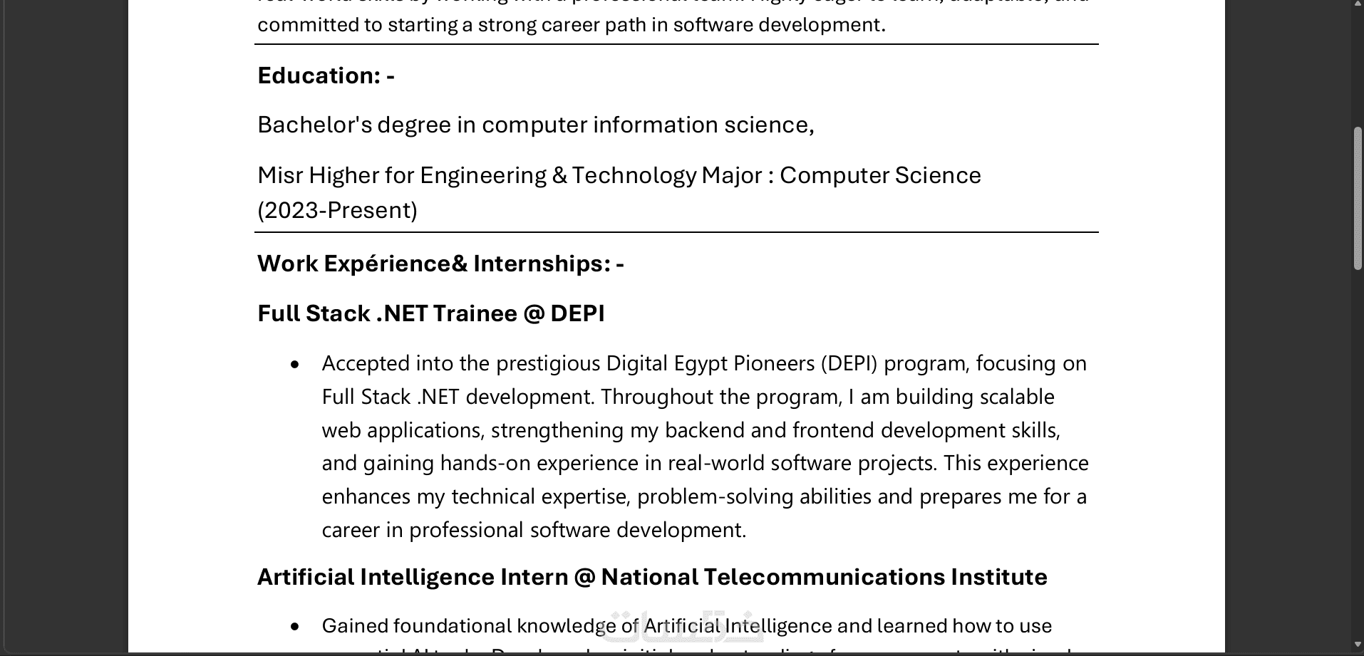 سأقوم بتحويل سيرتك الذاتية من مجرد تصميم عادي إلى ملف احترافي متوافق تماماً مع الـ ATS.