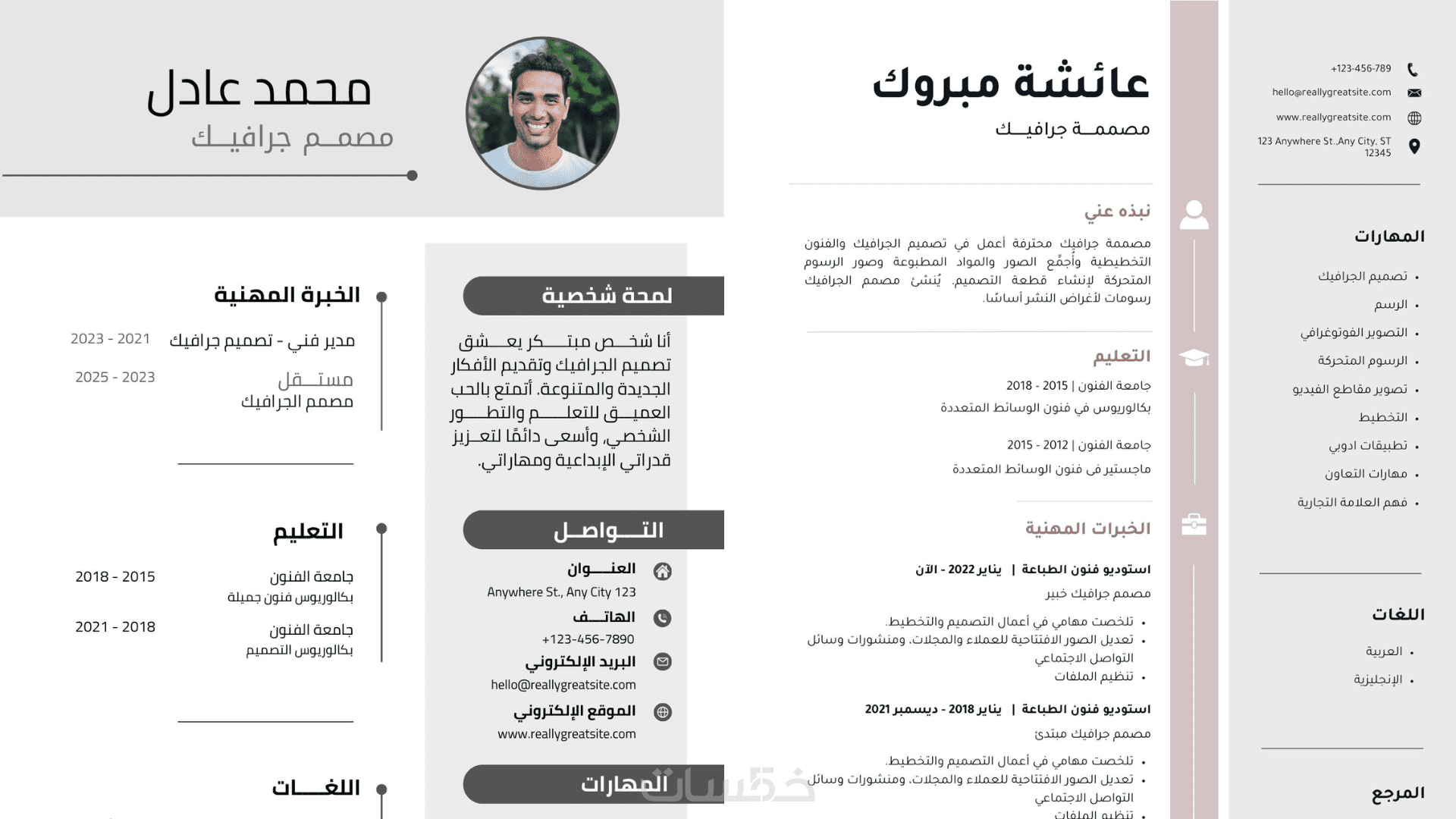 • تحديد لغة السيرة (عربية أو إنجليزية)