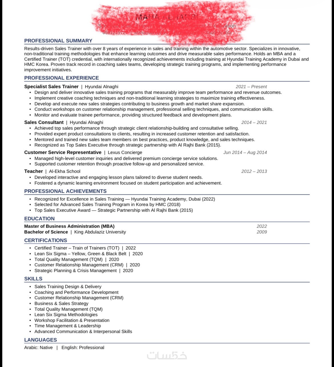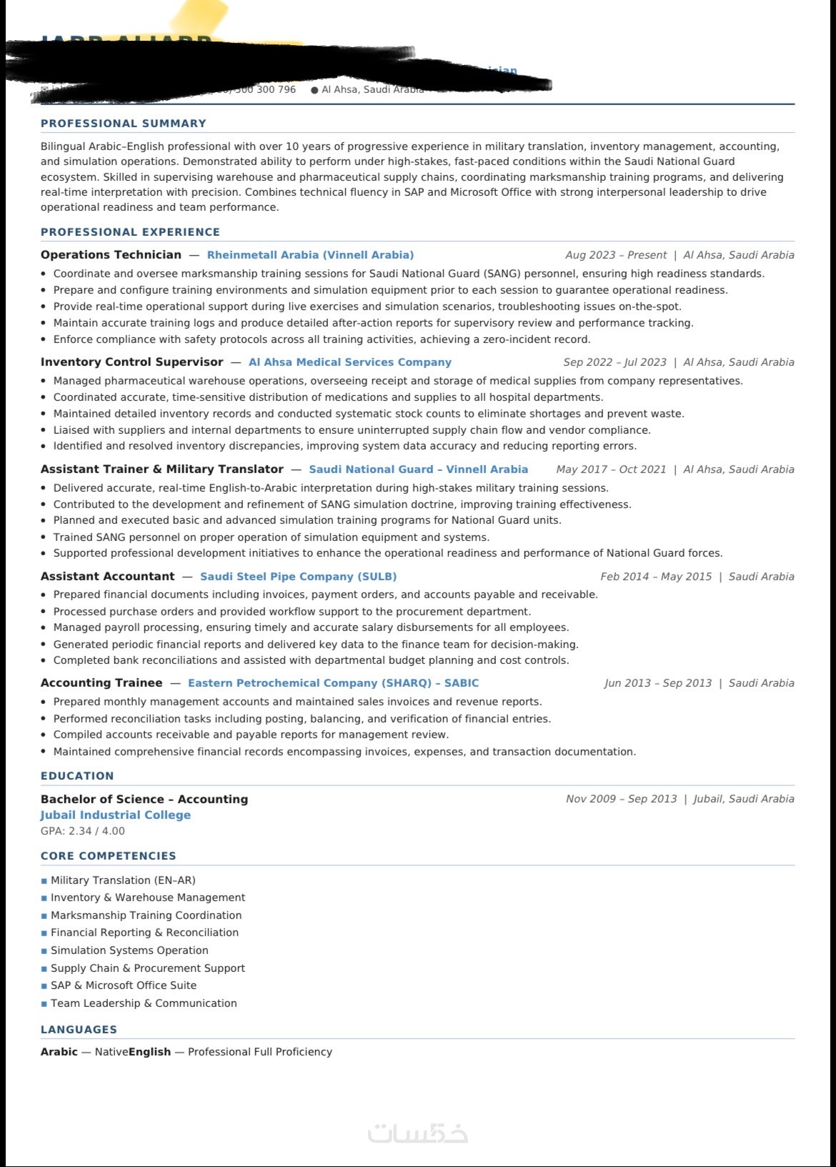 سيرة ذاتية باللغتين عربية وانجليزية ( نسختين مختلفتين )