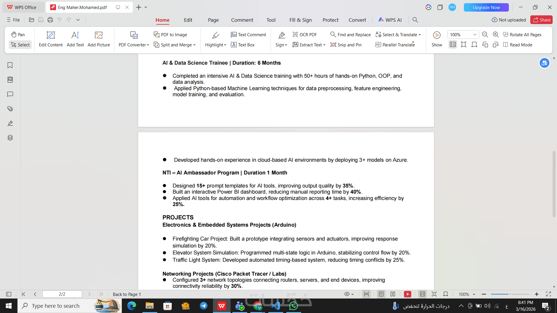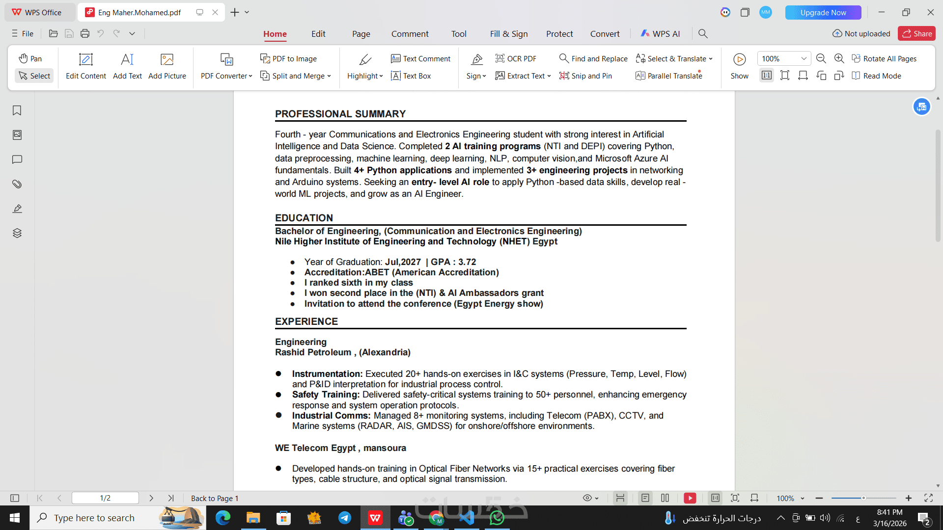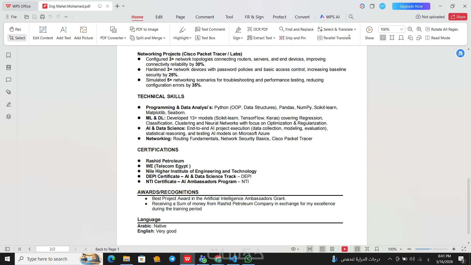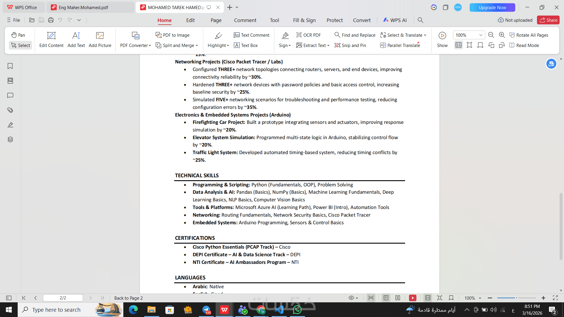 ترجمه السيره الذاتيه للغه اخرى (لنفس ال cv المكون من صفحتين)