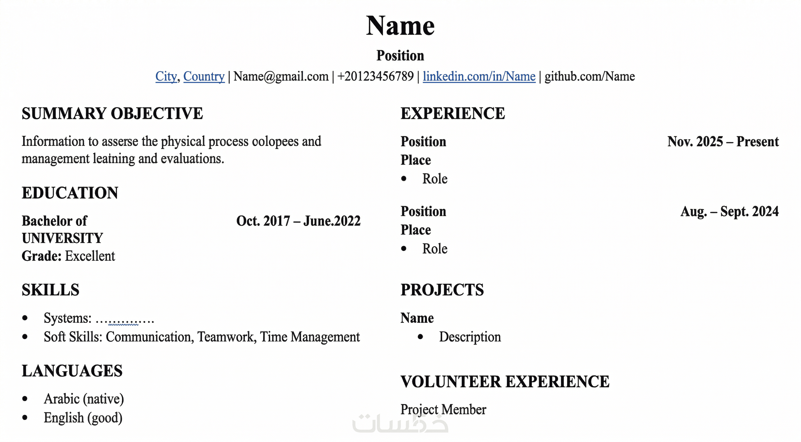 تحسين الكلمات المفتاحية (Keywords): توزيع الكلمات المفتاحية المناسبة لتخصصك لضمان عبور نظام الـ ATS بنجاح.