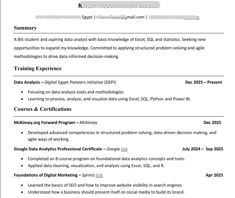 تسليم الملف بصيغة PDF عالية الجودة، جاهزة للطباعة أو الإرسال عبر البريد الإلكتروني وLinkedIn