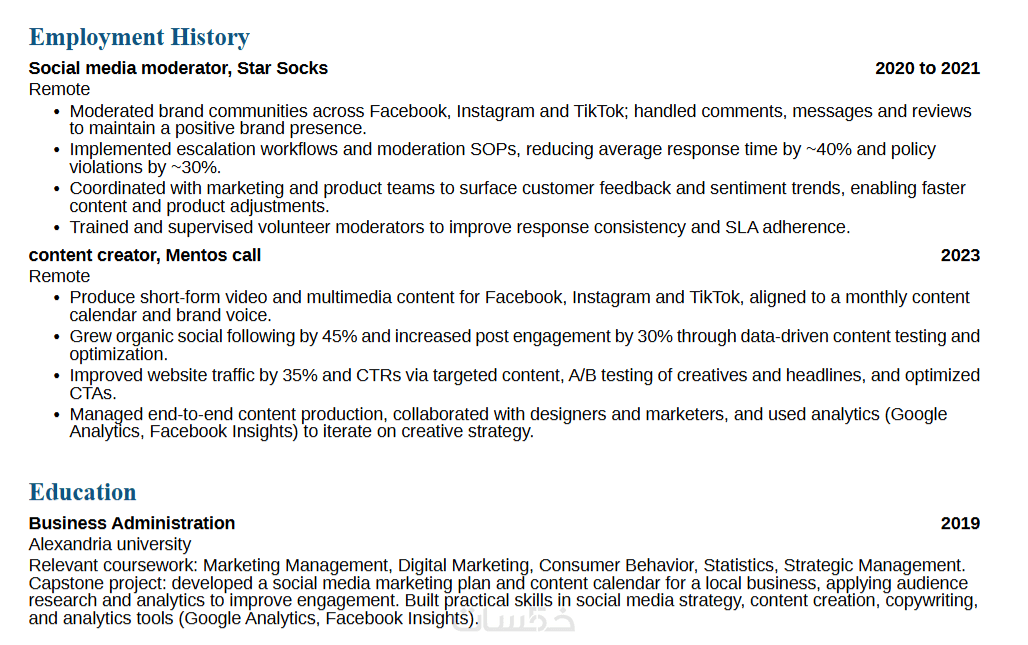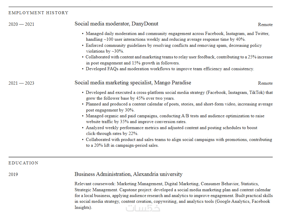 تصميمات تراعي الكلمات المفتاحية (Keywords) لتجاوز فلاتر التوظيف الإلكترونية والوصول إلى مسؤولي الموارد البشرية.