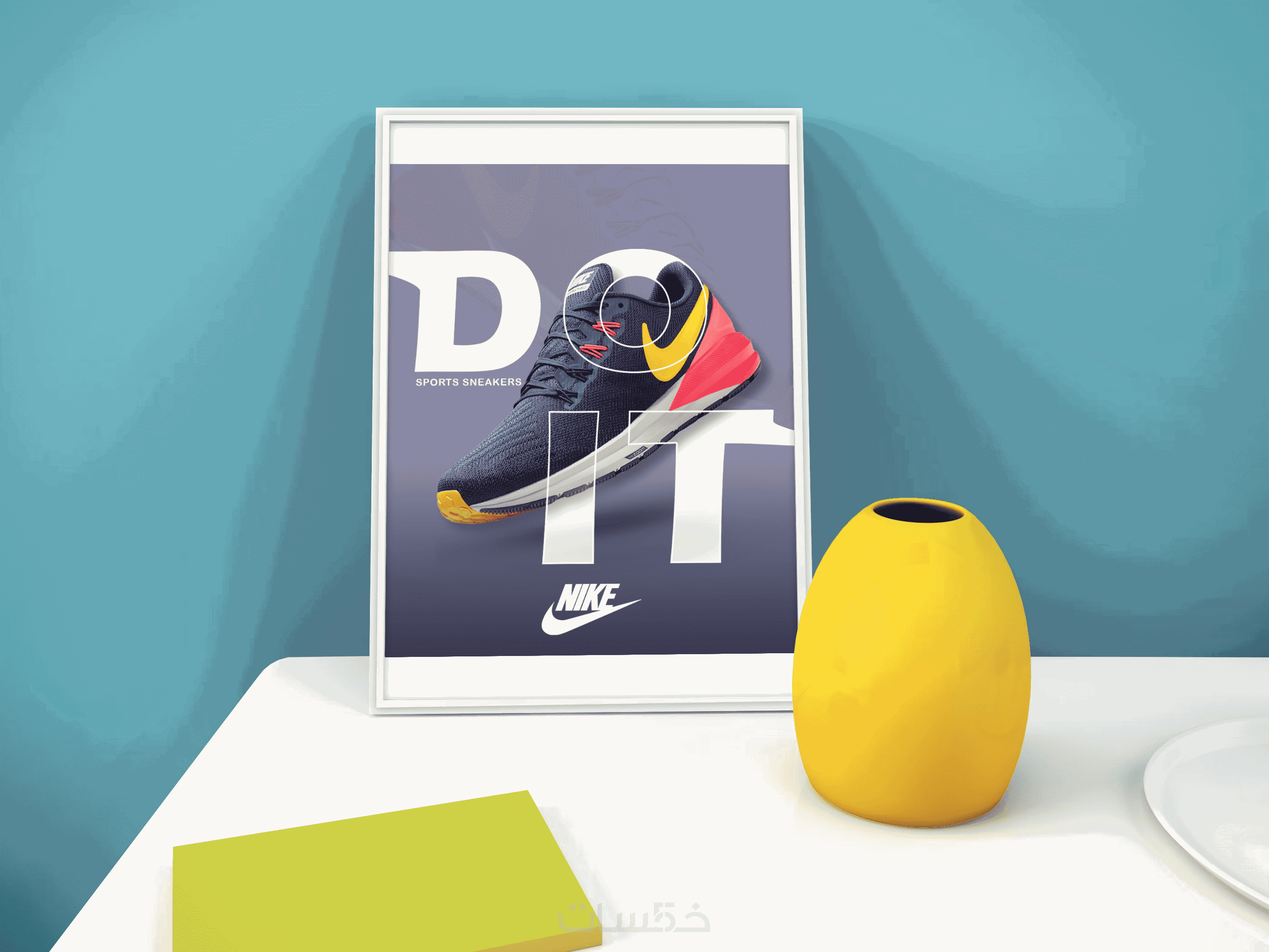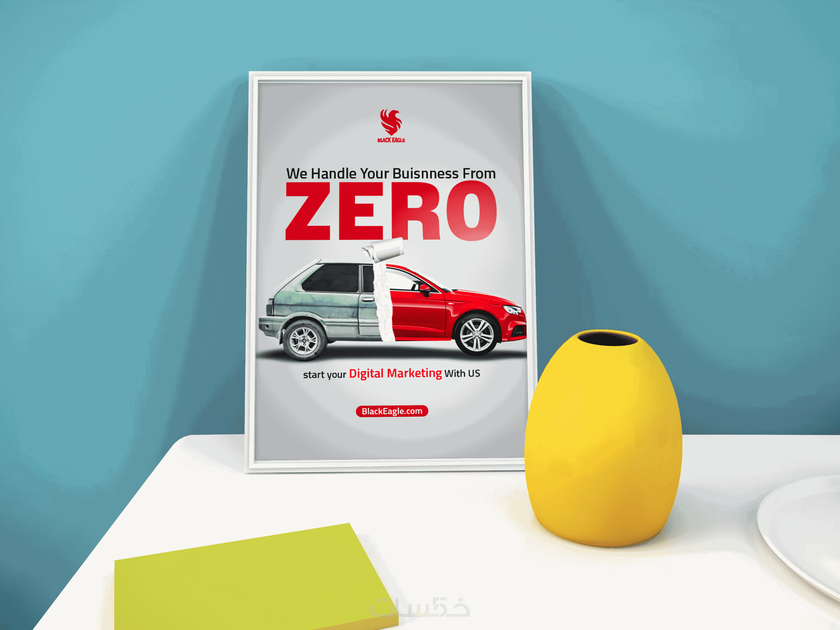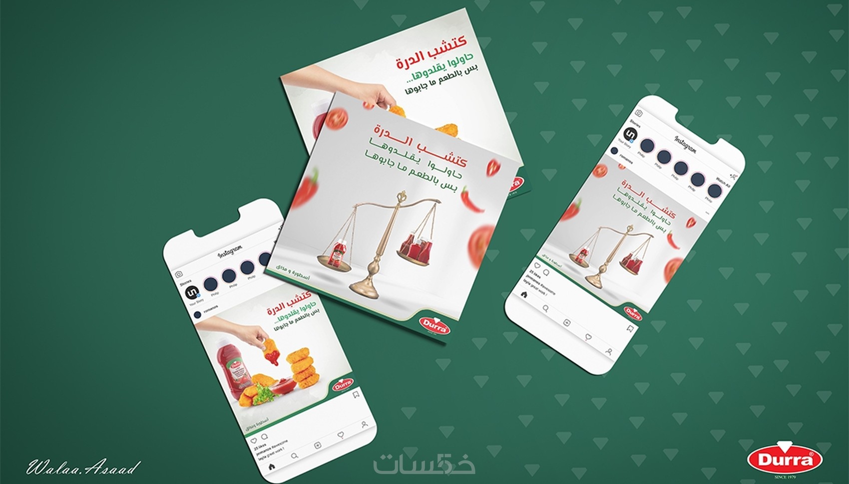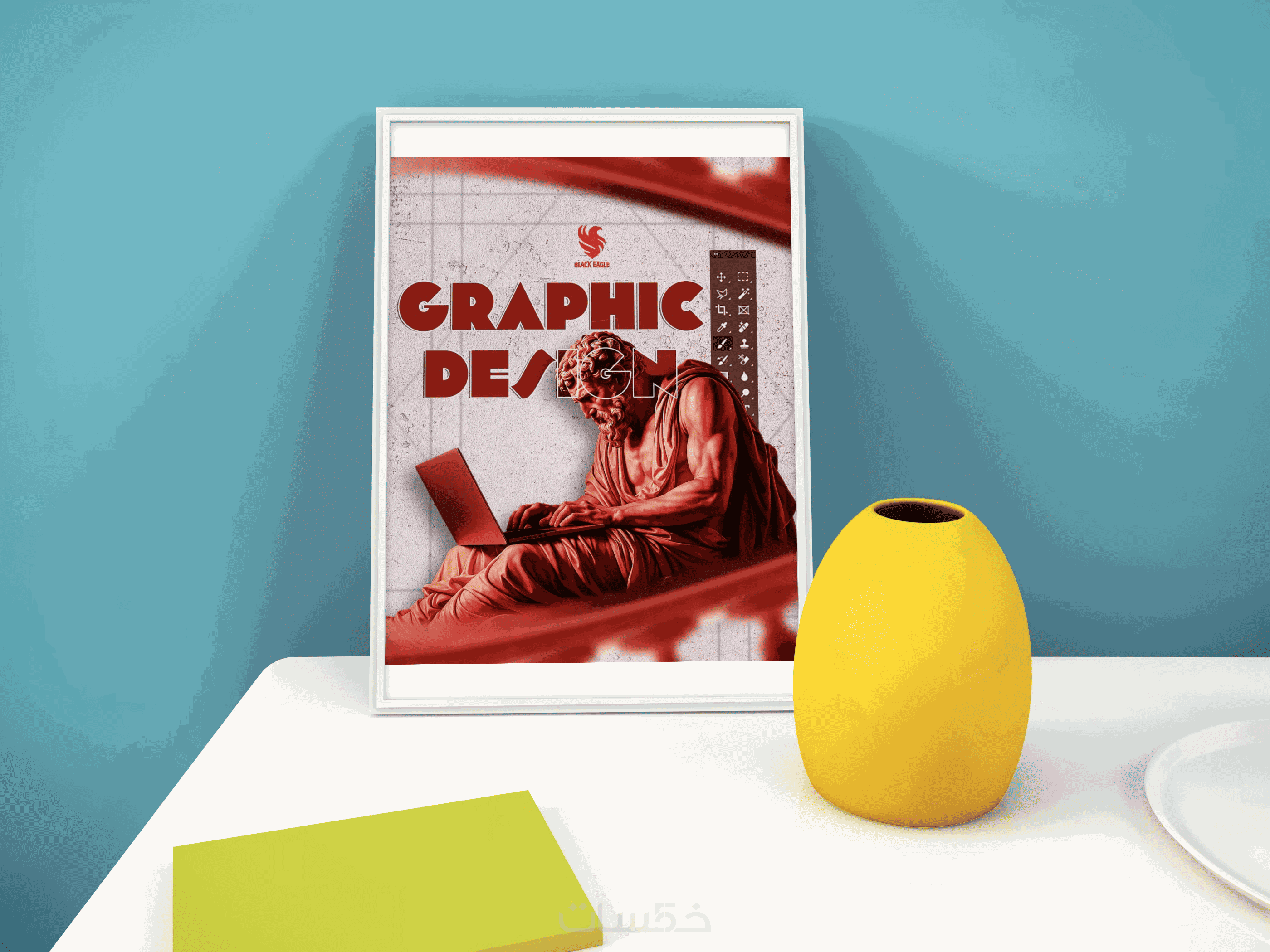 - يبدأ المصمم تصميم المنشور باختيار الصور المناسبة للتصميم وللعلامة التجارية، ثم وضعها في قالب مخصص ويكتب عليها العبارات المطلوبة.