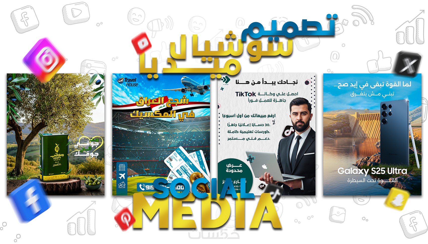 تصميم منشورات سوشيال ميديا هو إنتاج تصاميم احترافية تحتوي على عبارات تسويقية توضح مميزات المنتجات وصورها الترويجية بطريقة جذابة لتعريف العملاء بأعمالك ولضمان وصولها لأكبر عدد من المستخدمين المنتشرين على مواقع التواصل الاجتماعي.