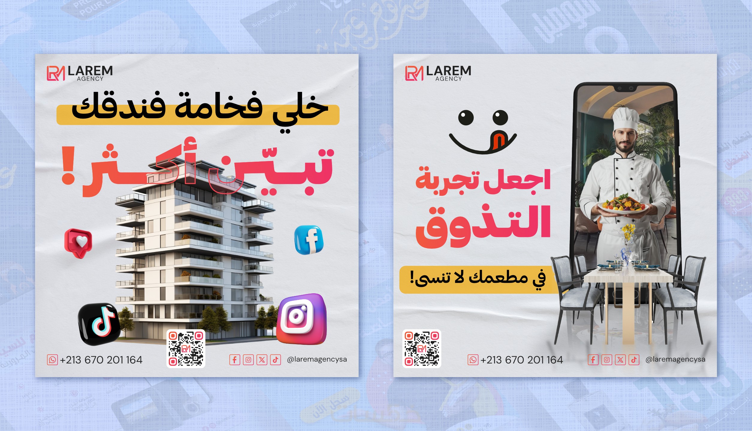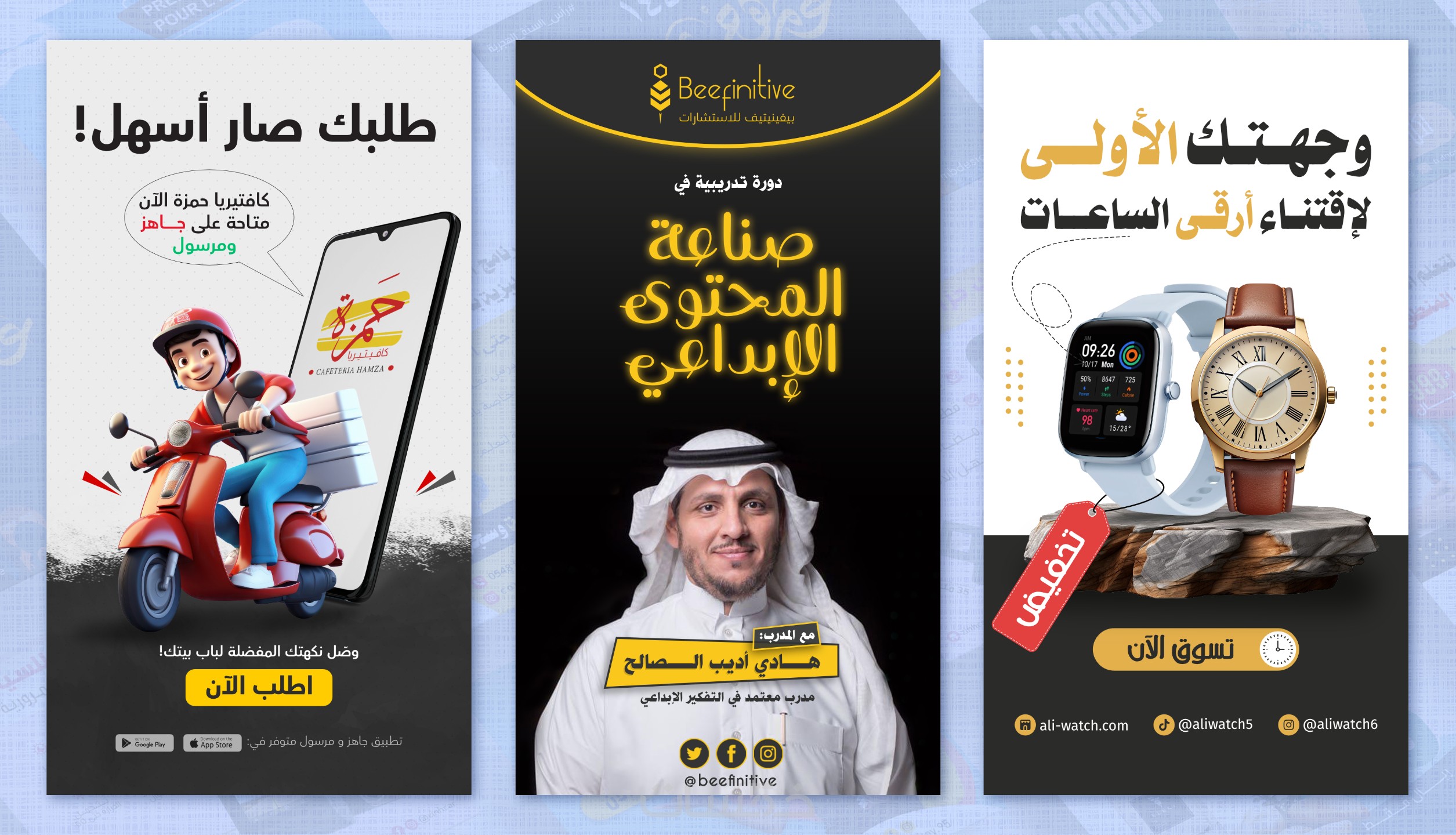 // لا تدع وجودك على وسائل التواصل الاجتماعي يتخلف. استثمر في المنشورات المصممة بشكل احترافي والتي ستترك انطباعا دائما لدى جمهورك. اطلب تصاميمك الآن!