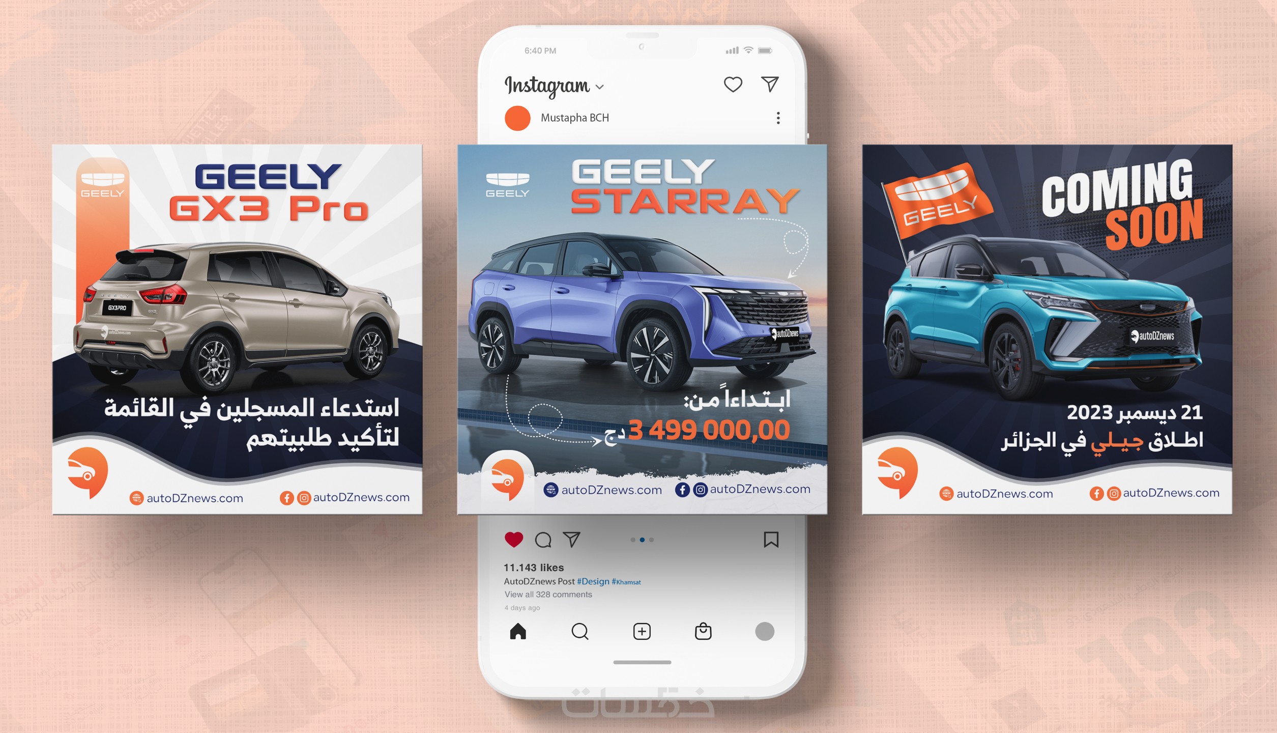 تسليم نفس التصميم ب (2) مقاسات اضافية - مقاس مربع وطولي المتوافقين مع بوست الفايسبوك والـ Story