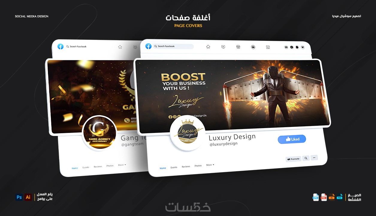 2. تصميم أغلفة الصفحات والقنوات.