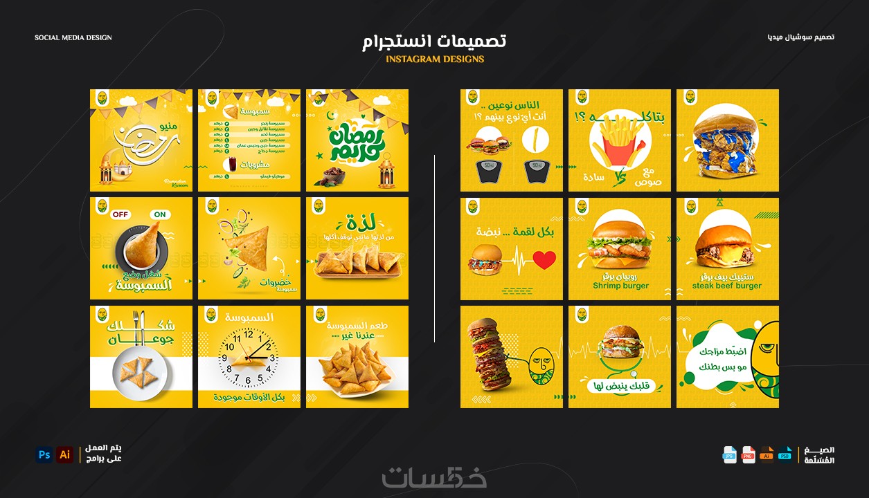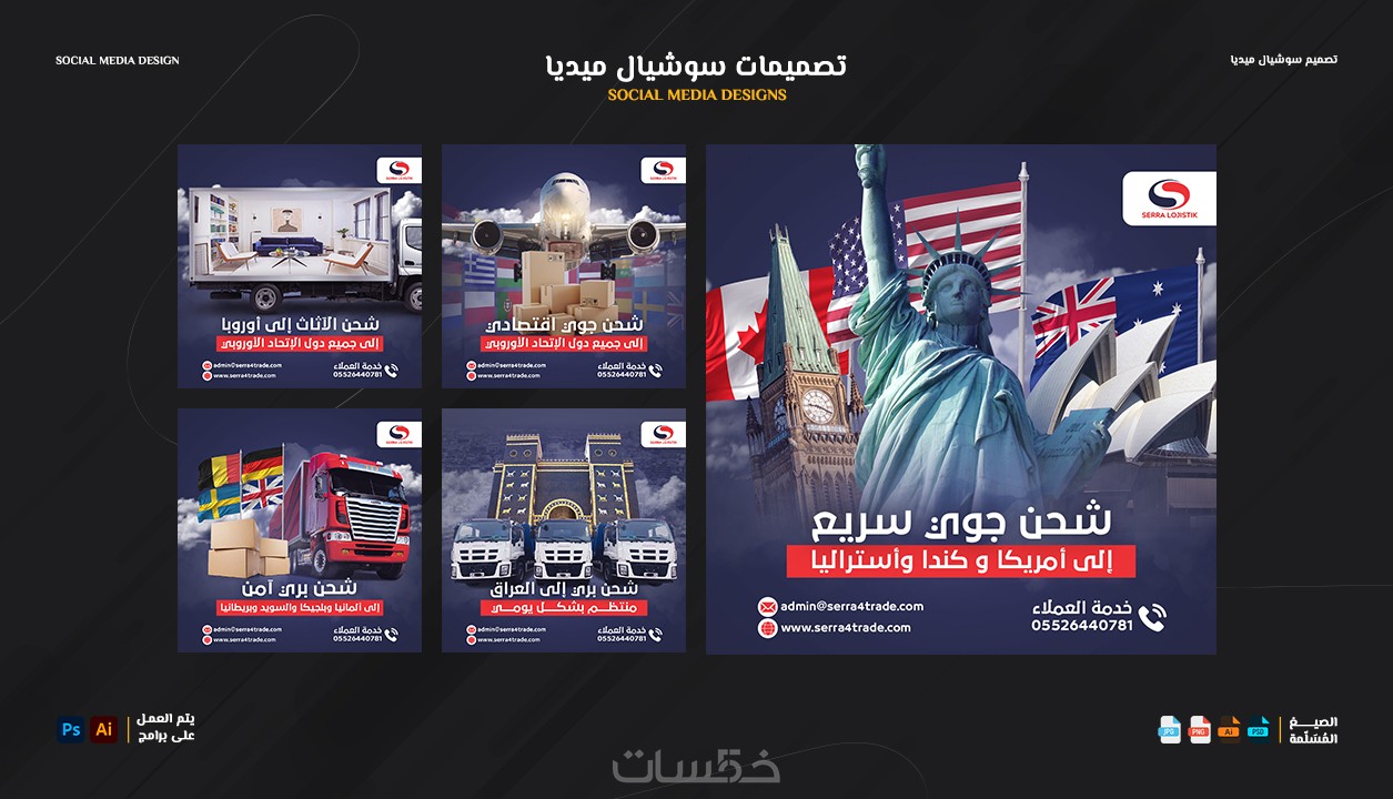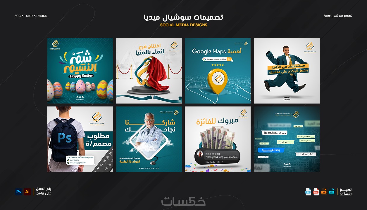 إرسال التصميم بمقاسات متعددة (فيس بوك - انستجرام - تويتر ….. ).