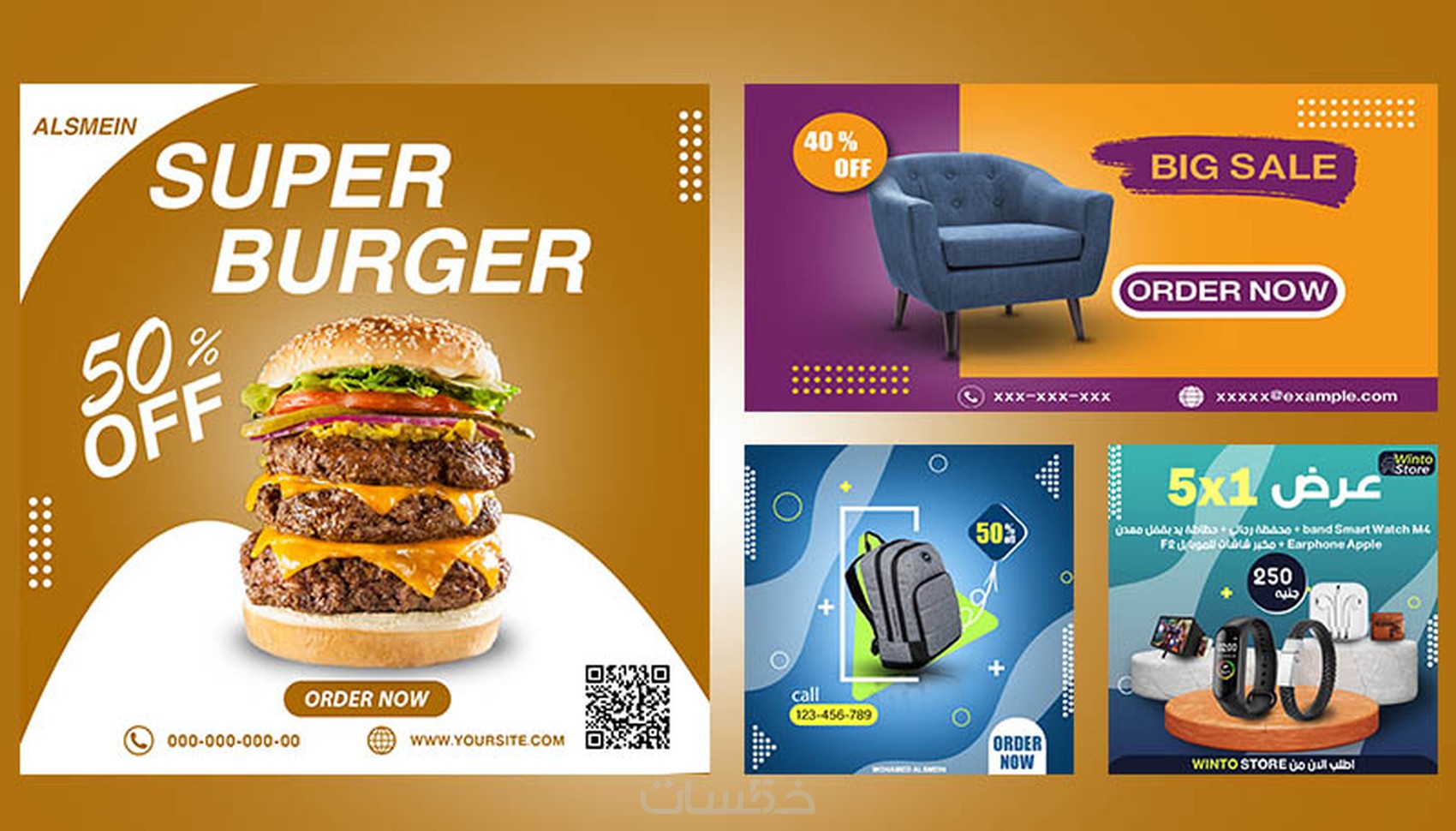 سأقوم بتصميم بنر جذاب لمواقع التواصل الاجتماعي ومنتجاتك وتوضيح الفكرة بوضوح لضمان انجذاب العميل والجمهور المسستهدف للمنتجات والخدمات التي تقدمها