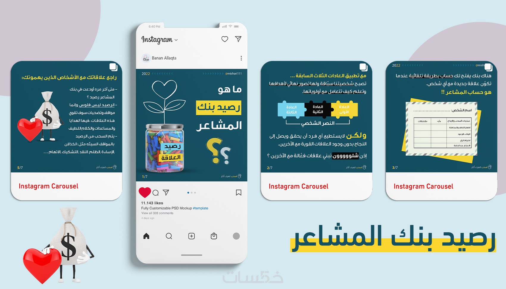 1- تصميم كاروسيل للانستجرام والفيس بوك بالمقاسات المطلوبة.