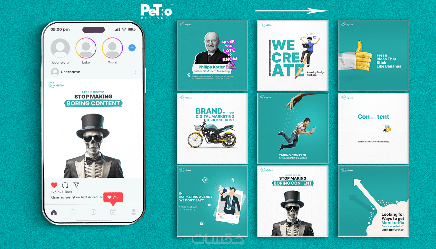 * دقة عالية في التصميم وإخراجه بجودة كبيرة تصل إلى px 3000*3000