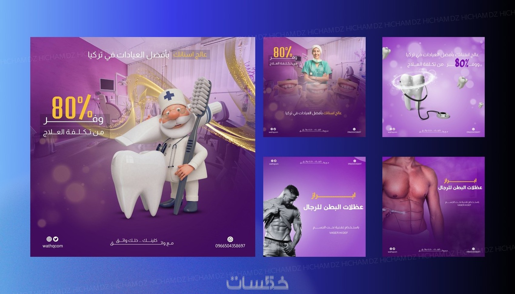 * أبعاد التصميم ومقاساته تتناسب مع وسائل التواصل الاجتماعي كلا على حدا