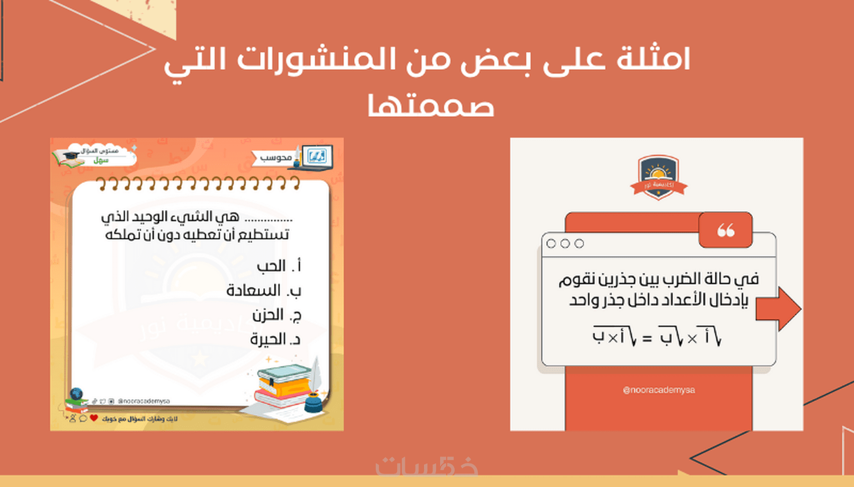 سأصمم لك بوست واحد كمثال واذا عندك ملاحظات سأقوم بتعديلها ان شاء الله و عدد البوستات على حسب ما تحدده انت والسعر العام ٥ دولار ل ٥ بوستات قابلة للتعديل