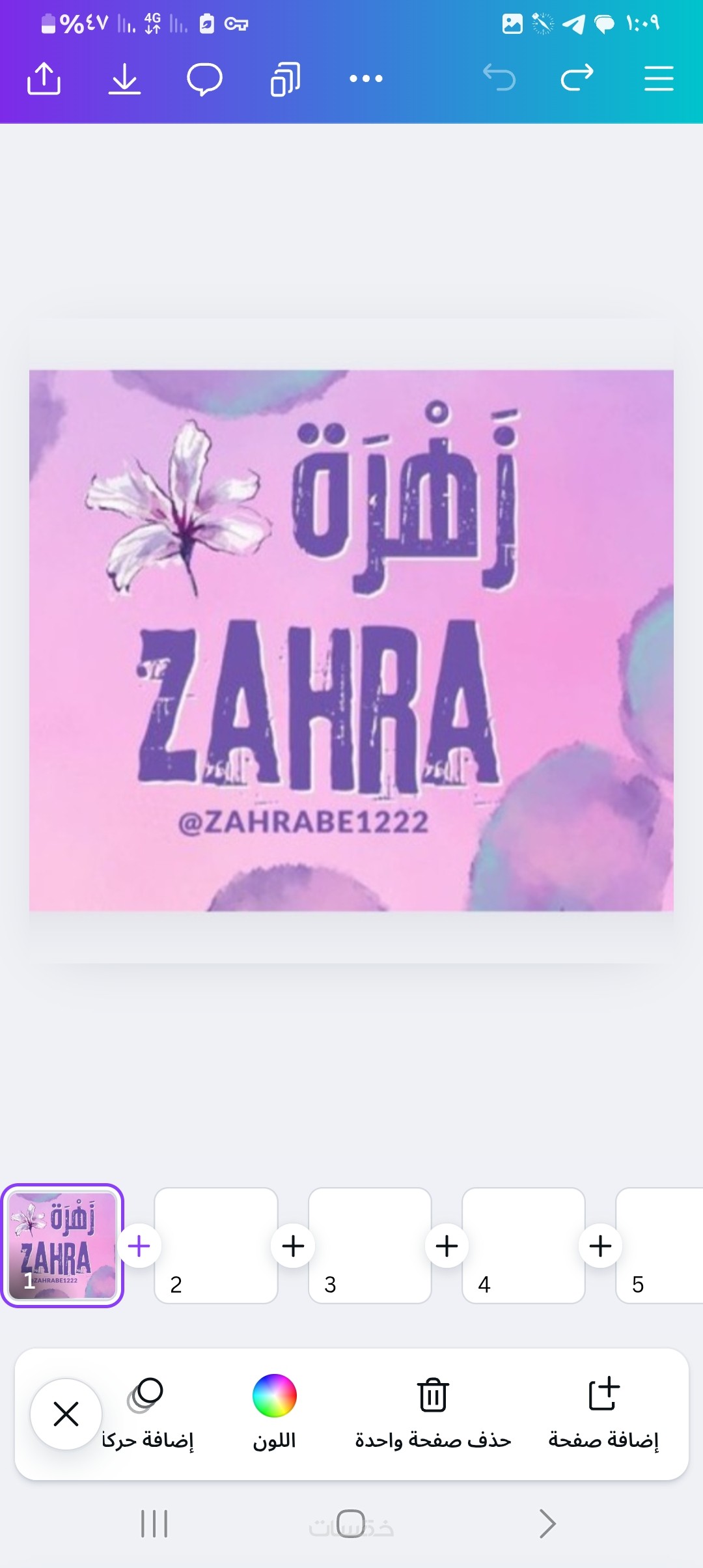 أنا زهرة، مصممة على Canva بخبرة في إنشاء تصاميم مميزة لقنوات تيليغرام، السوشيال ميديا، والملفات التعليمية.