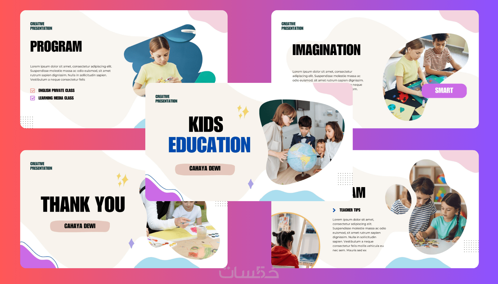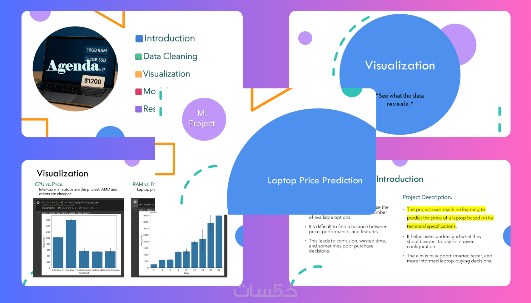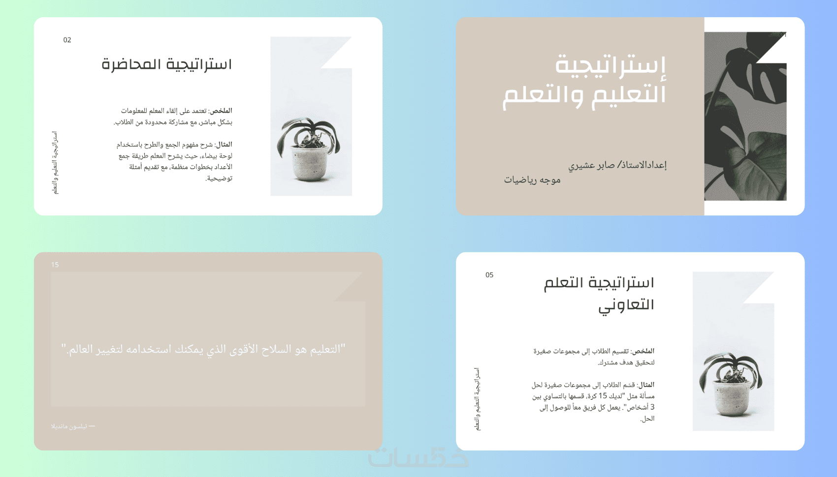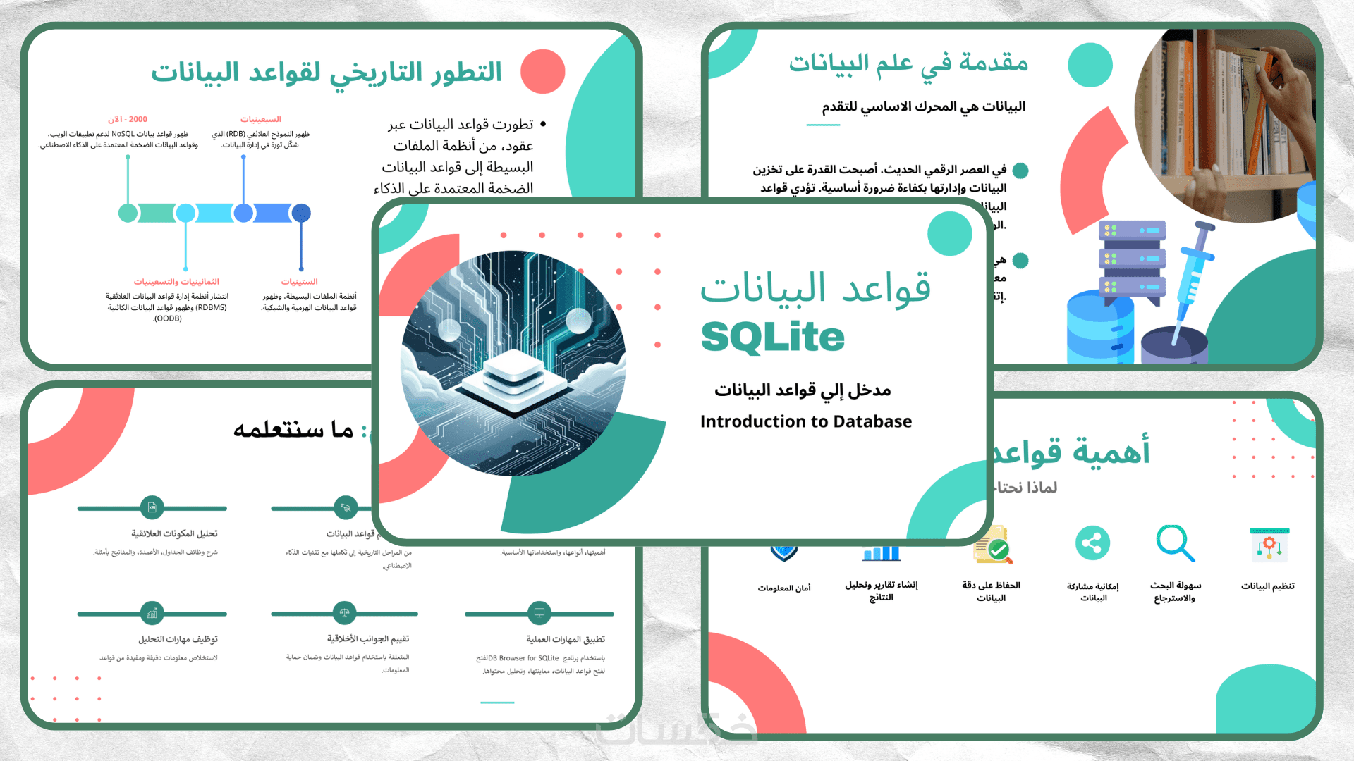 تصميم 5 شرائح برسوم وألوان متناسقة تعكس الهوية البصرية.