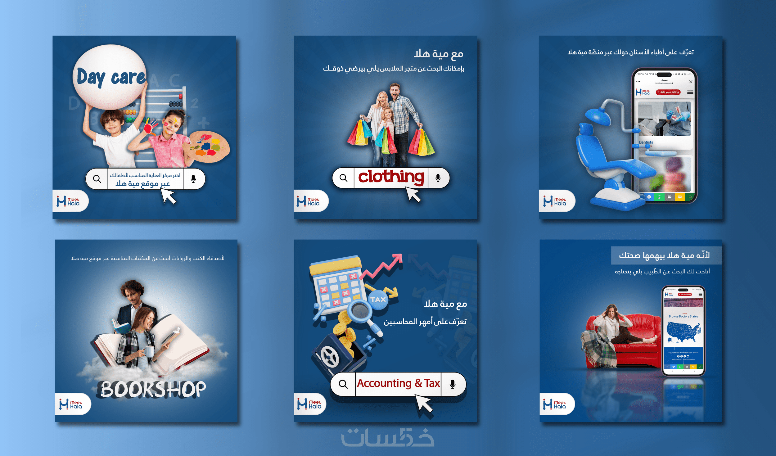 التصاميم باللغة التي تختارها.
