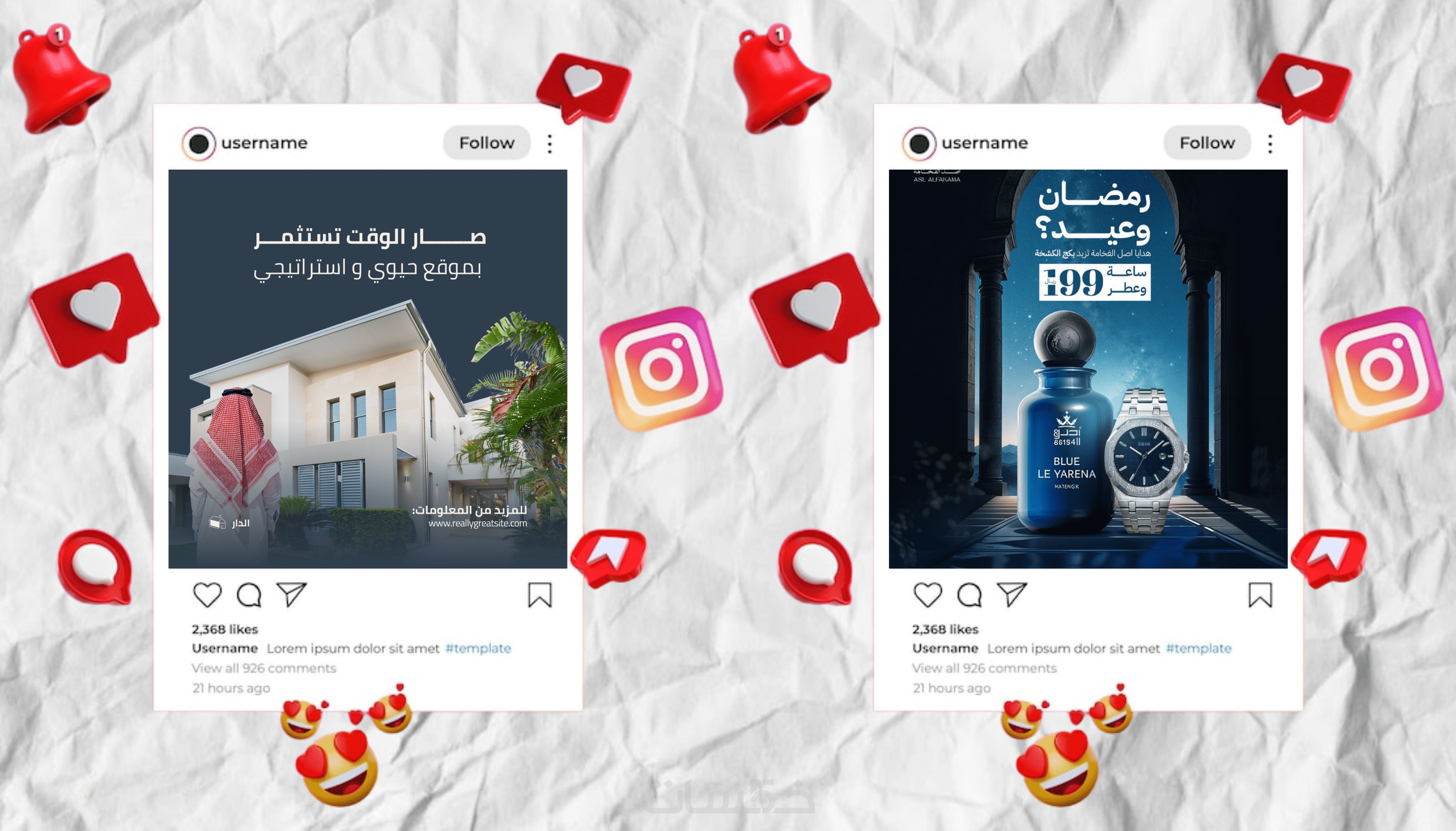 1. تصميم بوستات وقصص (Stories) بجودة عالية وبدقة تناسب كل منصة.