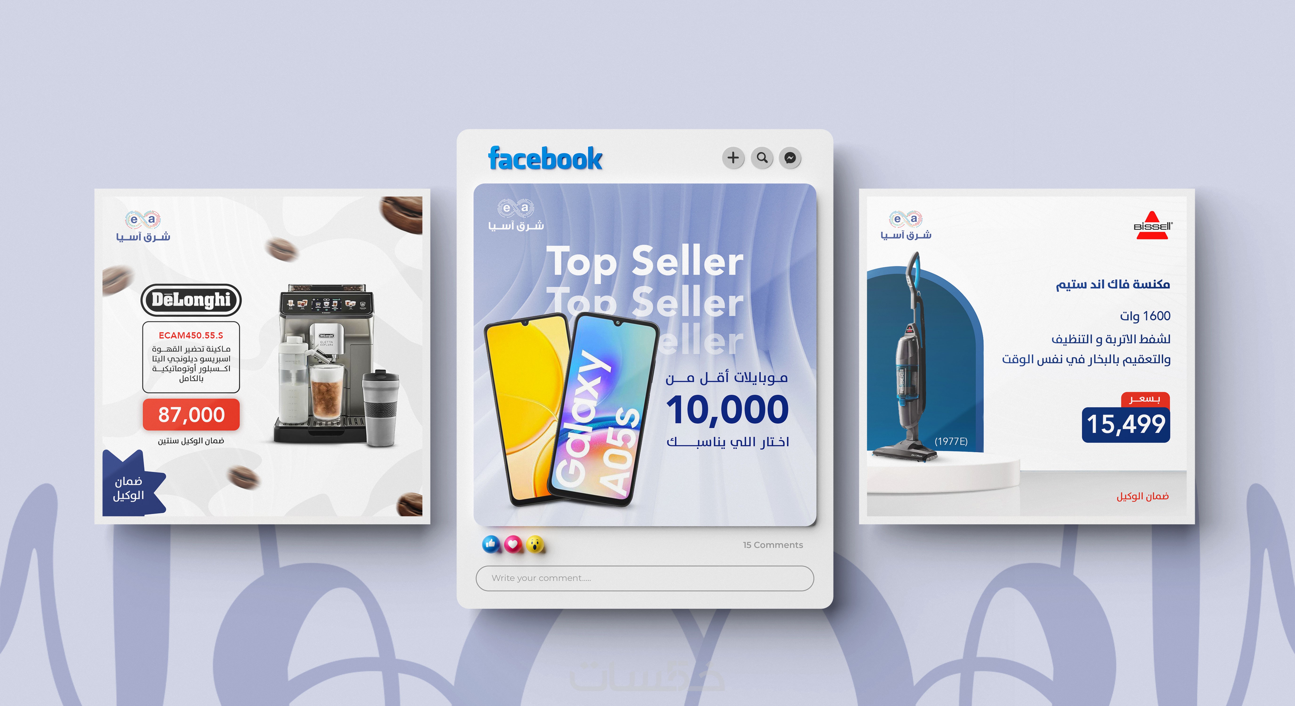 التصميمات المعروضة هي فقط جزء من تصميمات بوسترات سوشيال ميديا مختلفة، مصممة بأسلوب احترافي يعكس هوية البراند وروحه البصرية.