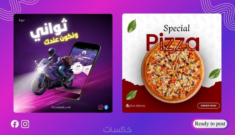 التصاميم تكون مناسبة لإنستغرام وفيسبوك ولينكدان، ومع إمكانية التعديل حسب هويتك وطلبك.