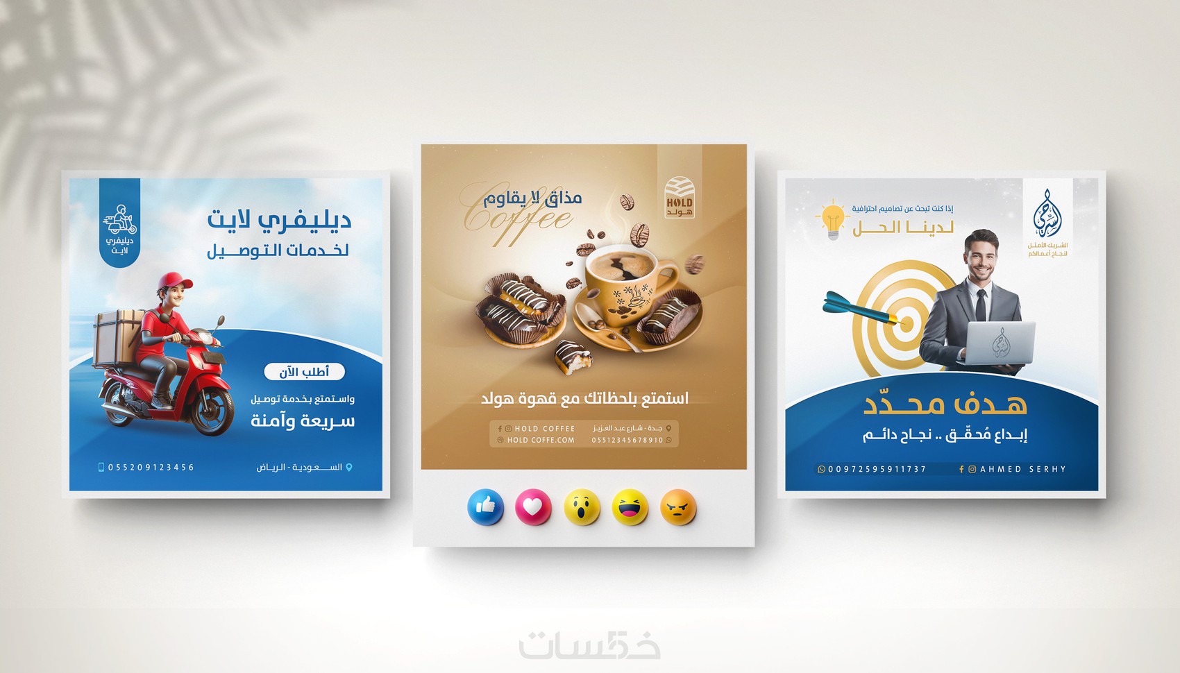 جاهزة للنشر على جميع منصات التواصل مثل Instagram وFacebook وLinkedIn وTwitter، مع وضوح وجودة عالية.