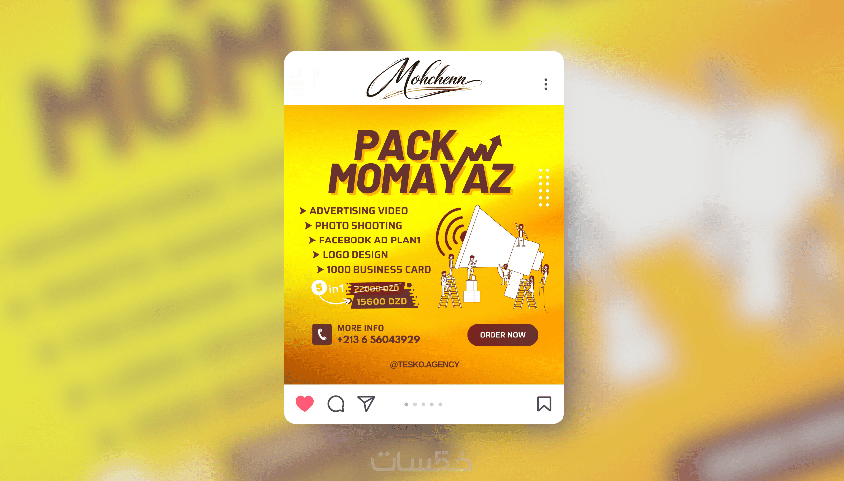 أقدّم لك تصميم منشورات سوشيال ميديا احترافية تساعدك على لفت انتباه جمهورك وتعزيز صورة علامتك التجارية، مع الالتزام بالجودة والدقة في التفاصيل. سواء كنت صاحب مشروع، متجر، أو صانع محتوى، سأعمل على تحويل فكرتك إلى تصميم جذاب يعكس رسالتك بوضوح ويخدم هدفك التسويقي.