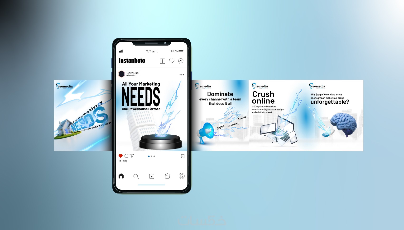 الكاروسيل (Carousel Post): منشور يحتوي على صور أو فيديوهات متعددة (حتى 20)، يمكن التمرير بينها لعرض محتوى متسلسل، مثل شرح فكرة أو عرض منتجات