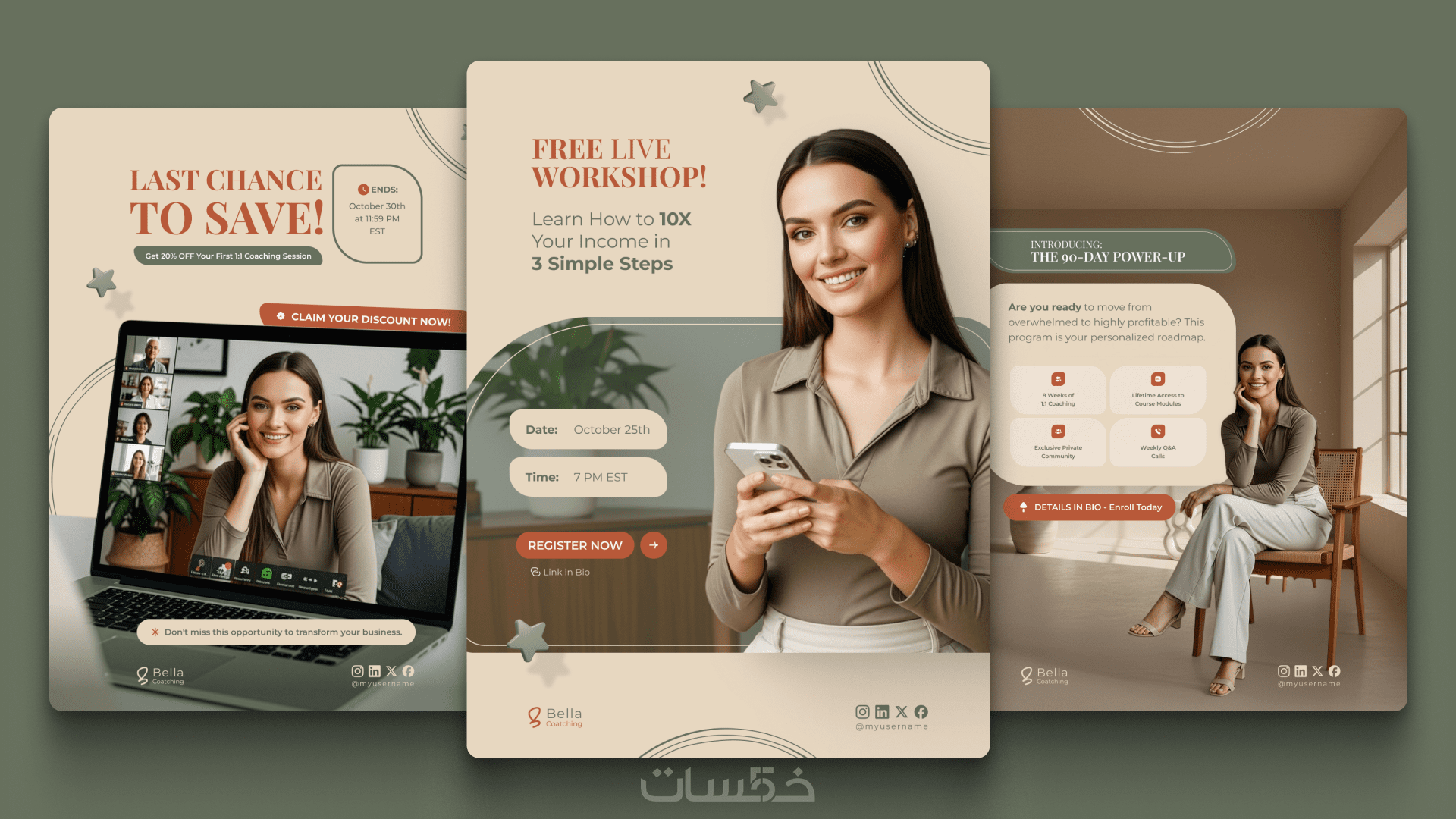 - تصميم عدد (2) قالب بوست (Post) و (Story) بتنسيق متناسق.