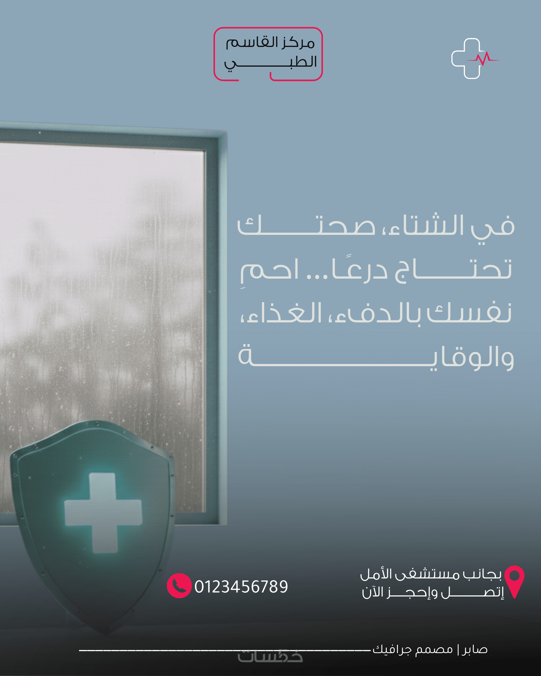 تصاميمي لمركز القاسم الطبي تجمع بين الهوية الراقية والرسالة الإنسانية، مع التركيز على إبراز الثقة والاحترافية التي يبحث عنها أي مركز طبي.