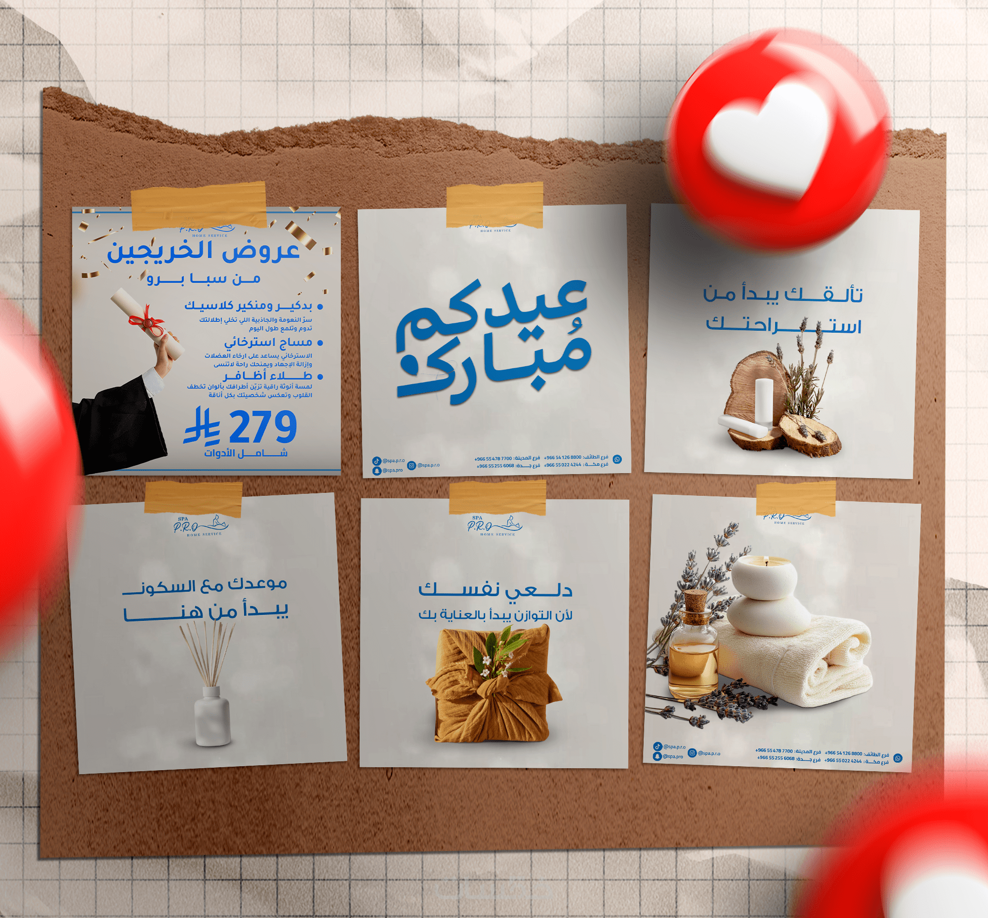 تصاميم بمقاس موحّد مناسب للنشر على مختلف منصات التواصل الاجتماعي مثل فيسبوك، إنستجرام، تويتر وغيرها.