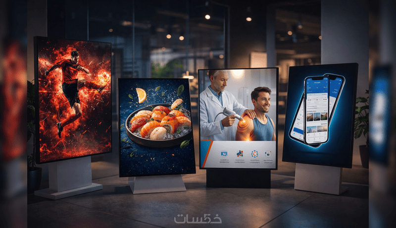 عناوين جذابة (Typographic Hierarchy): التركيز على العنوان الرئيسي وجمل الـ "Call to Action" لضمان تفاعل الجمهور مع الإعلان.
