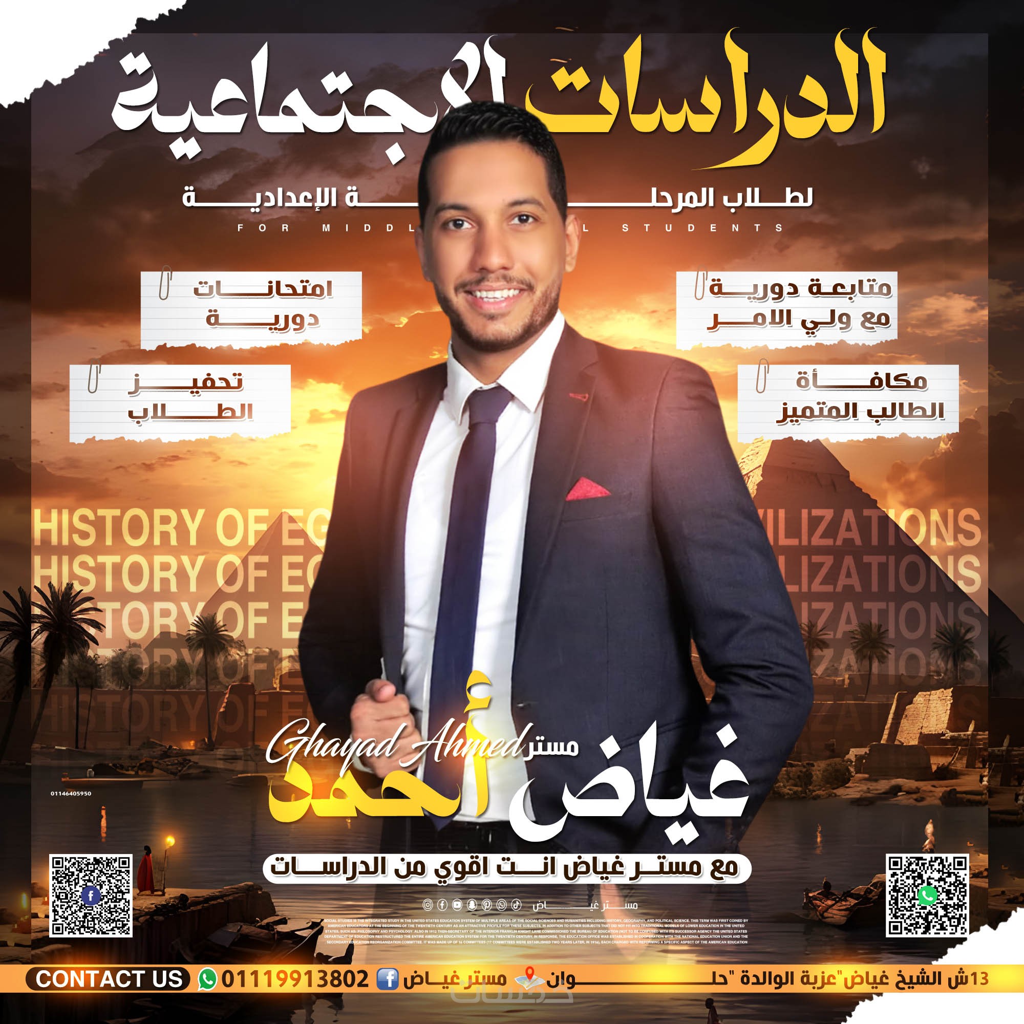 أقدم لك خدمة تصميم بوستات احترافية مخصصة للمدرسين لاستخدامها على مواقع التواصل الاجتماعي مثل فيسبوك وإنستجرام و التيك توك.